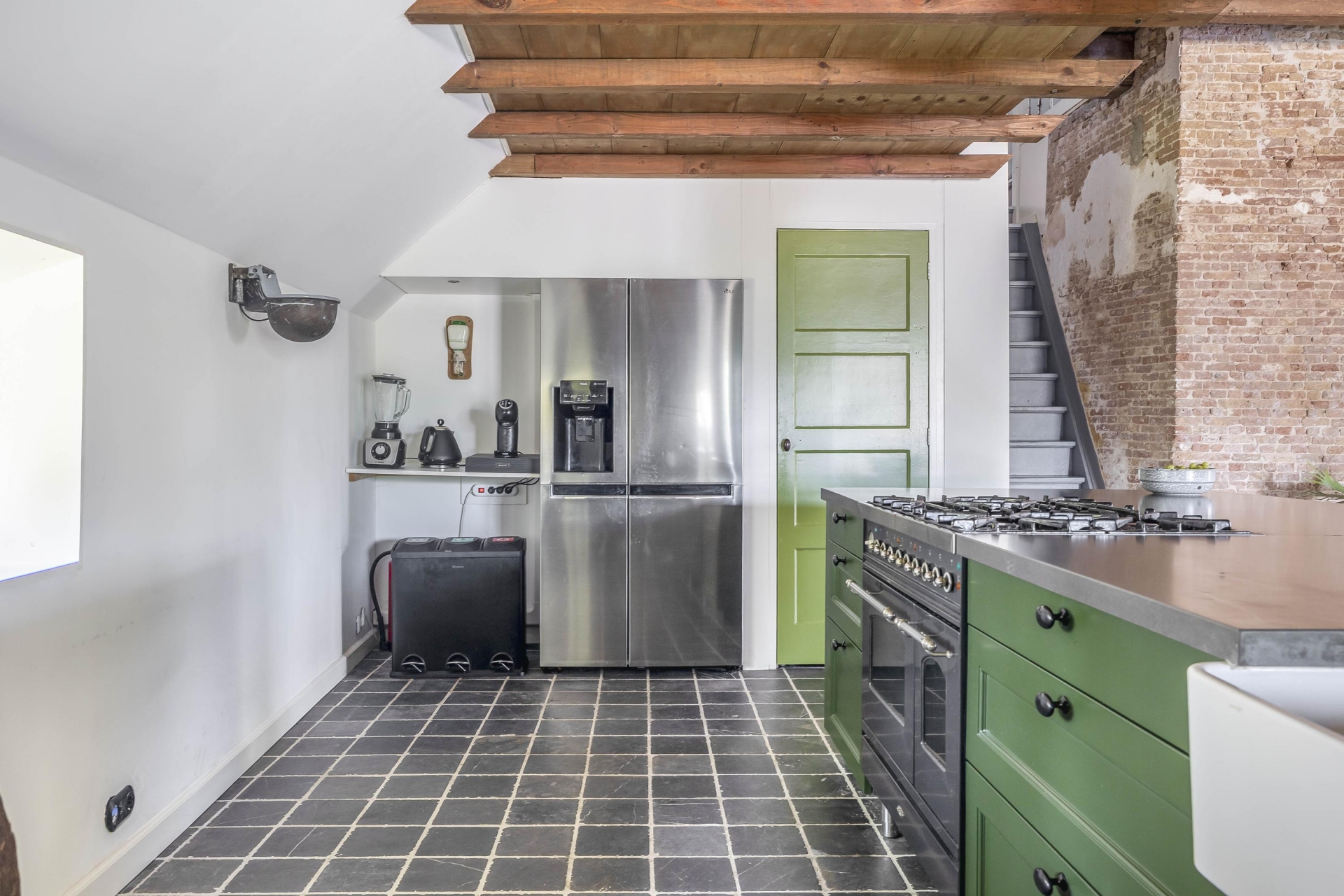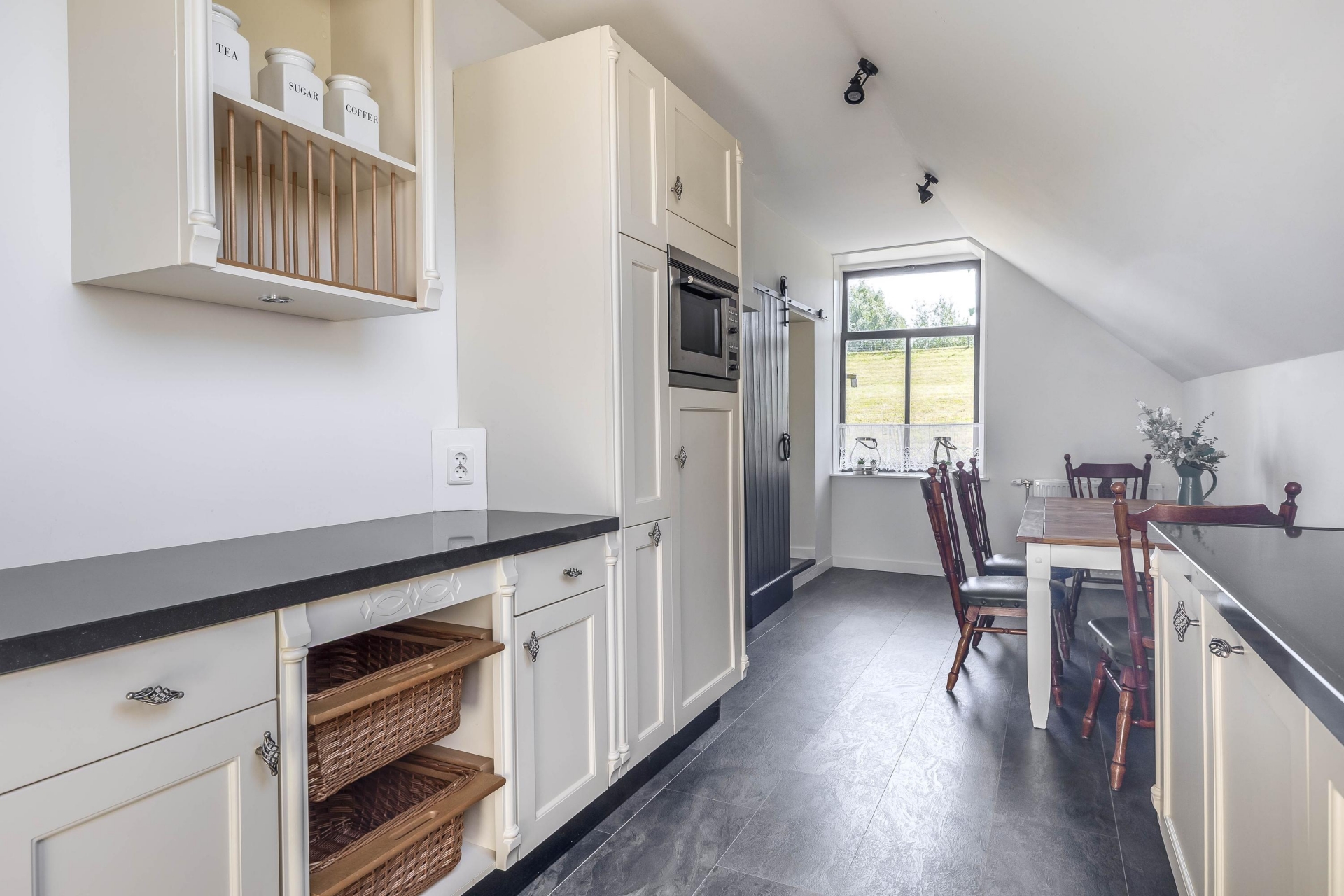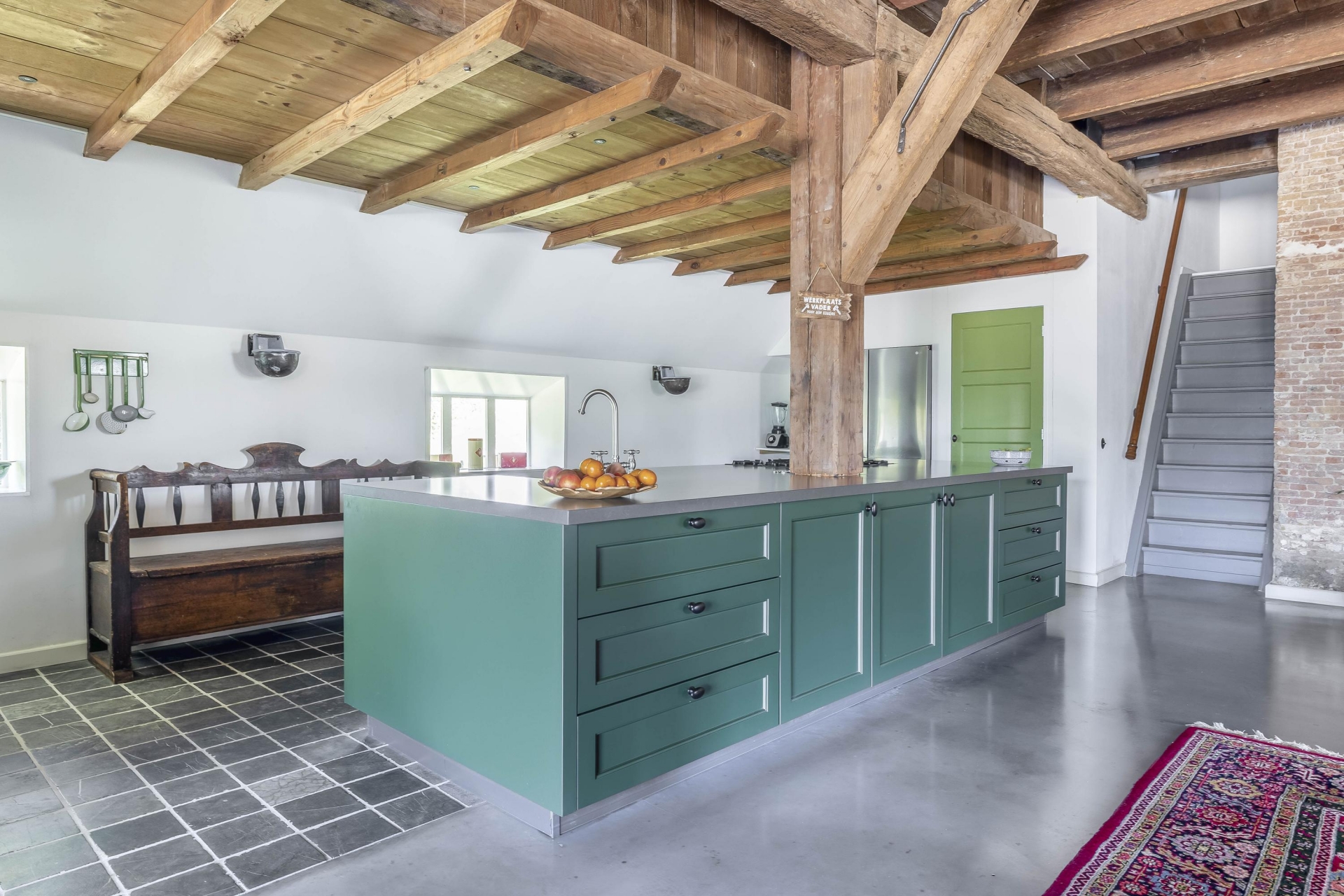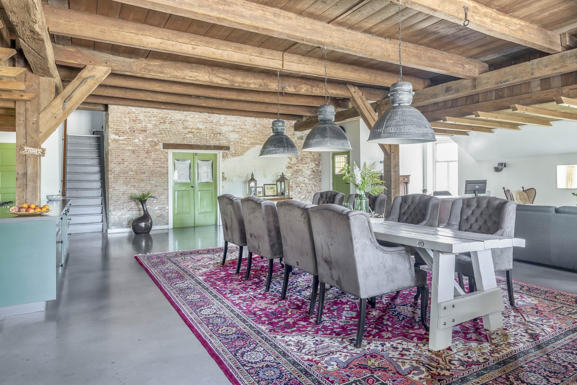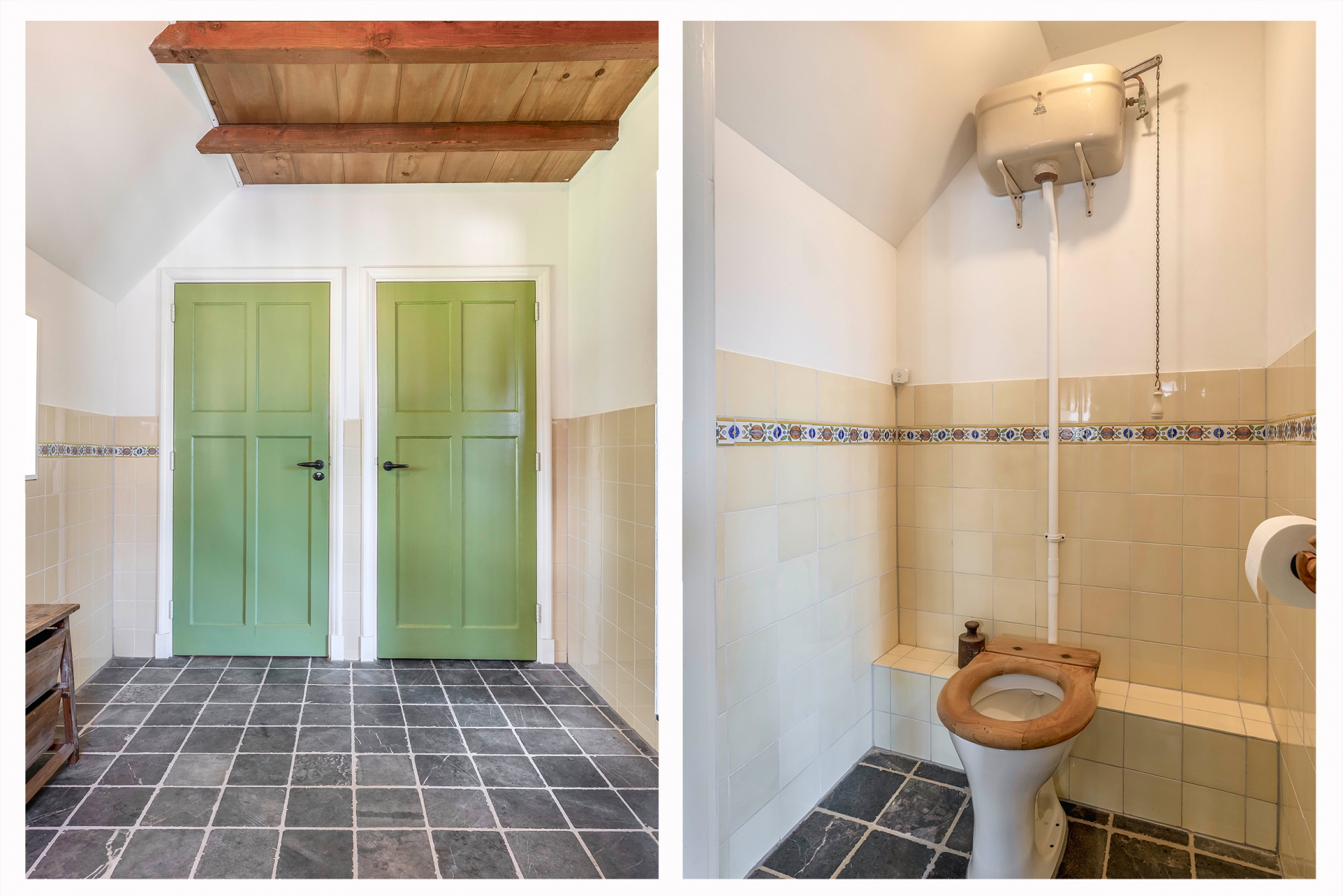 De boerderij stamt uit de 17e eeuw en is volledig gerenoveerd met oog voor stijl én comfort. De rieten kap, luiken, originele houten balken en de karakteristieke indeling ademen historie, terwijl de afwerking juist eigentijds is. De royale woonkeuken in het hart van het huis is een absolute blikvanger: een combinatie van landelijke charme en hedendaags gemak. Denk aan een groot fornuis, veel werkruimte en directe toegang tot de tuin – koken en leven vloeien hier moeiteloos in elkaar over.