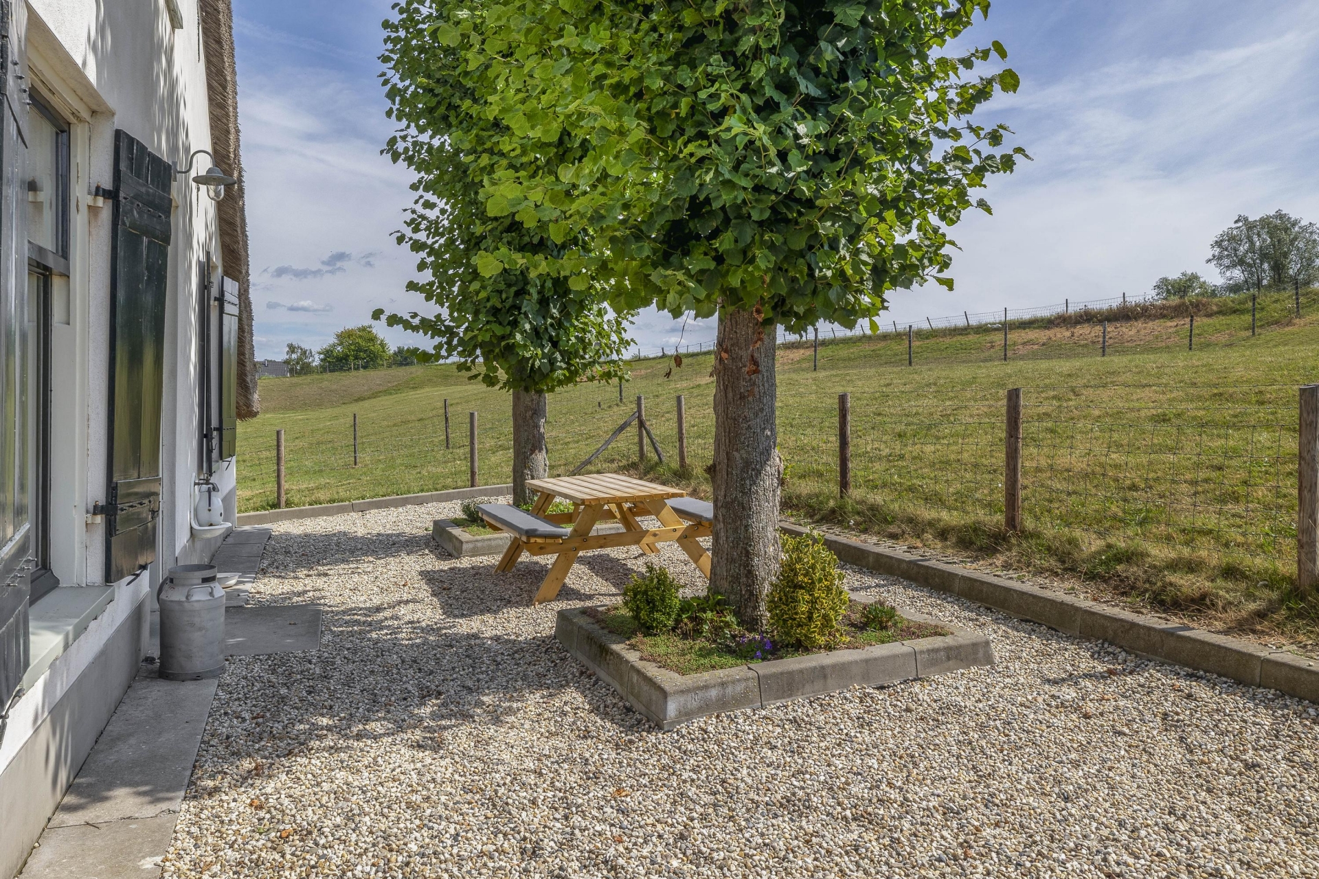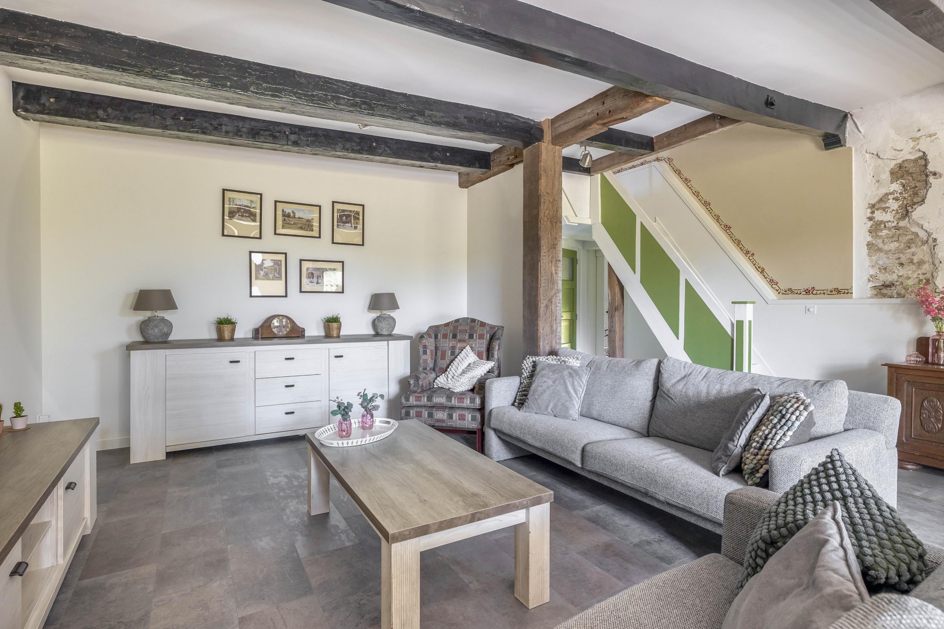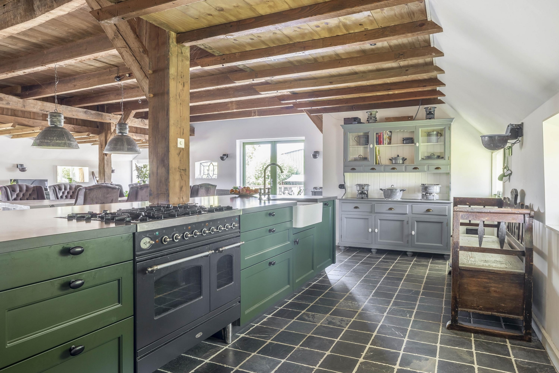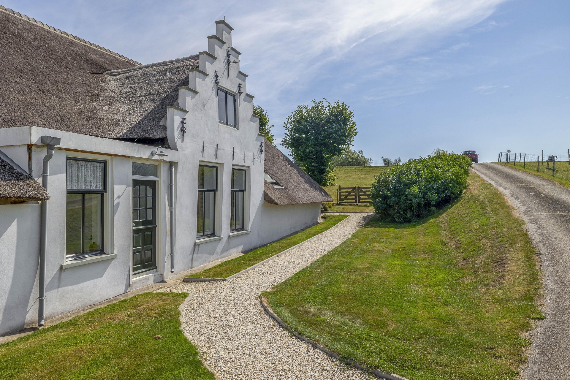 De boerderij stamt uit de 17e eeuw en is volledig gerenoveerd met oog voor stijl én comfort. De rieten kap, luiken, originele houten balken en de karakteristieke indeling ademen historie, terwijl de afwerking juist eigentijds is. De royale woonkeuken in het hart van het huis is een absolute blikvanger: een combinatie van landelijke charme en hedendaags gemak. Denk aan een groot fornuis, veel werkruimte en directe toegang tot de tuin – koken en leven vloeien hier moeiteloos in elkaar over.