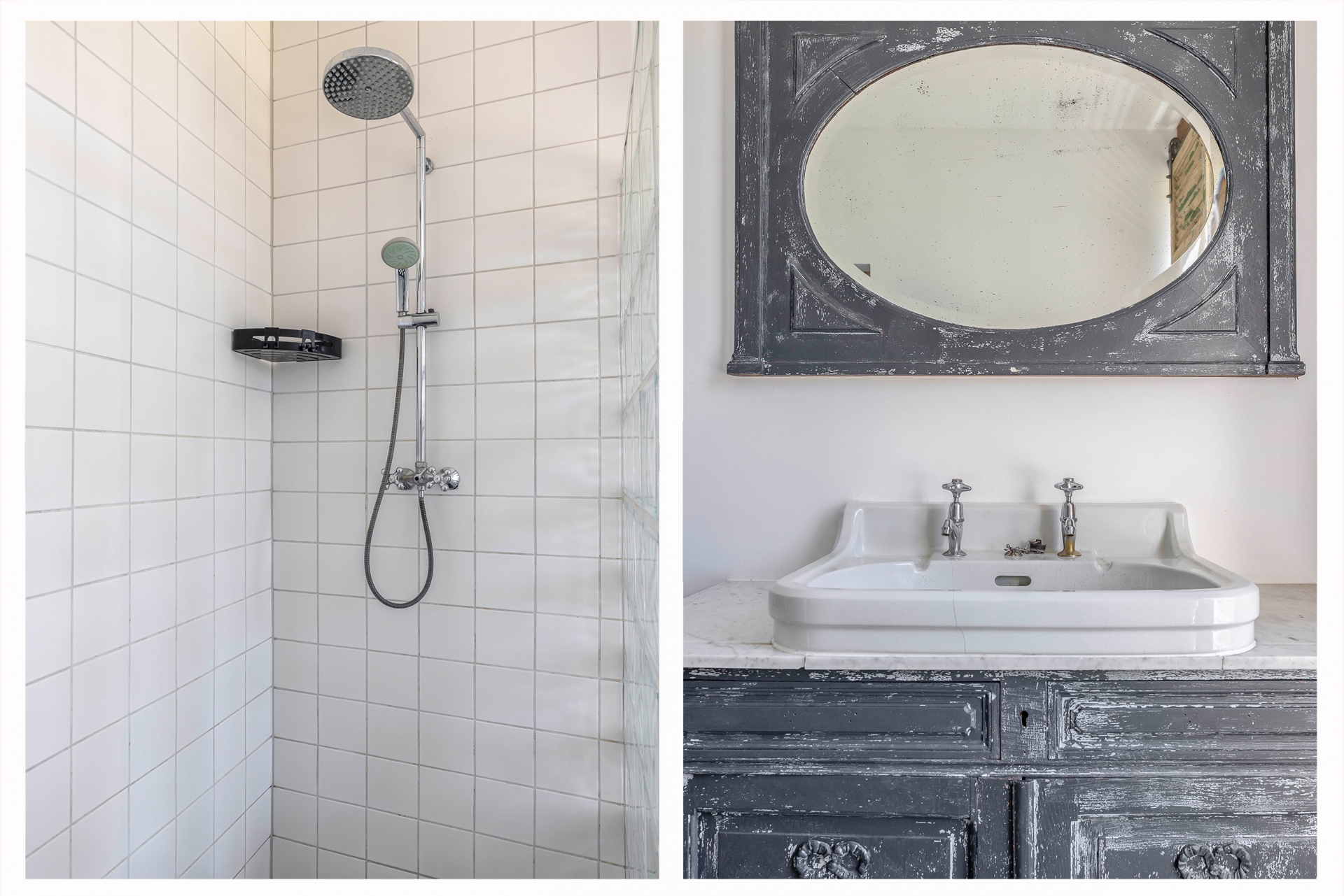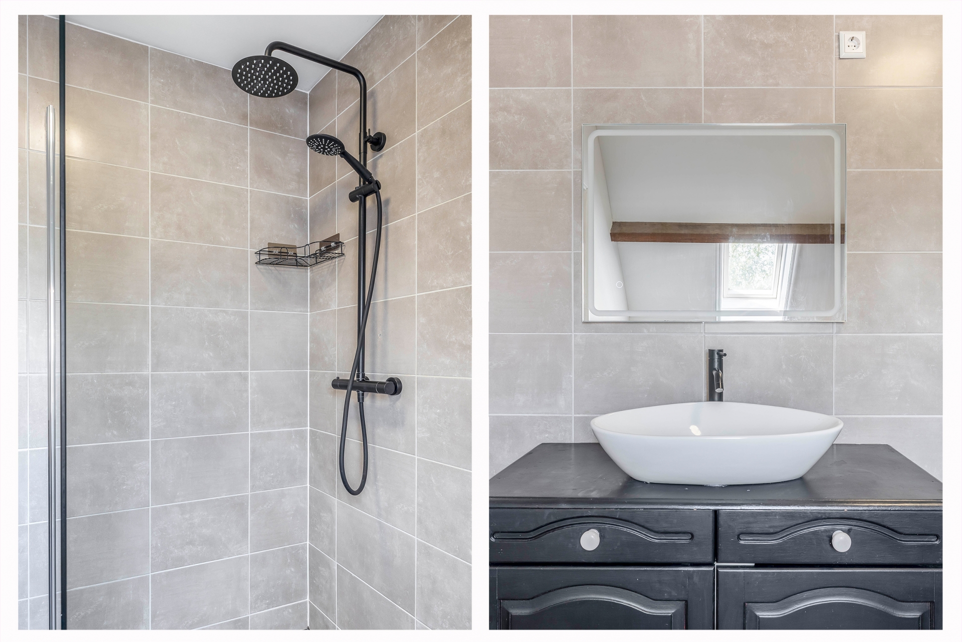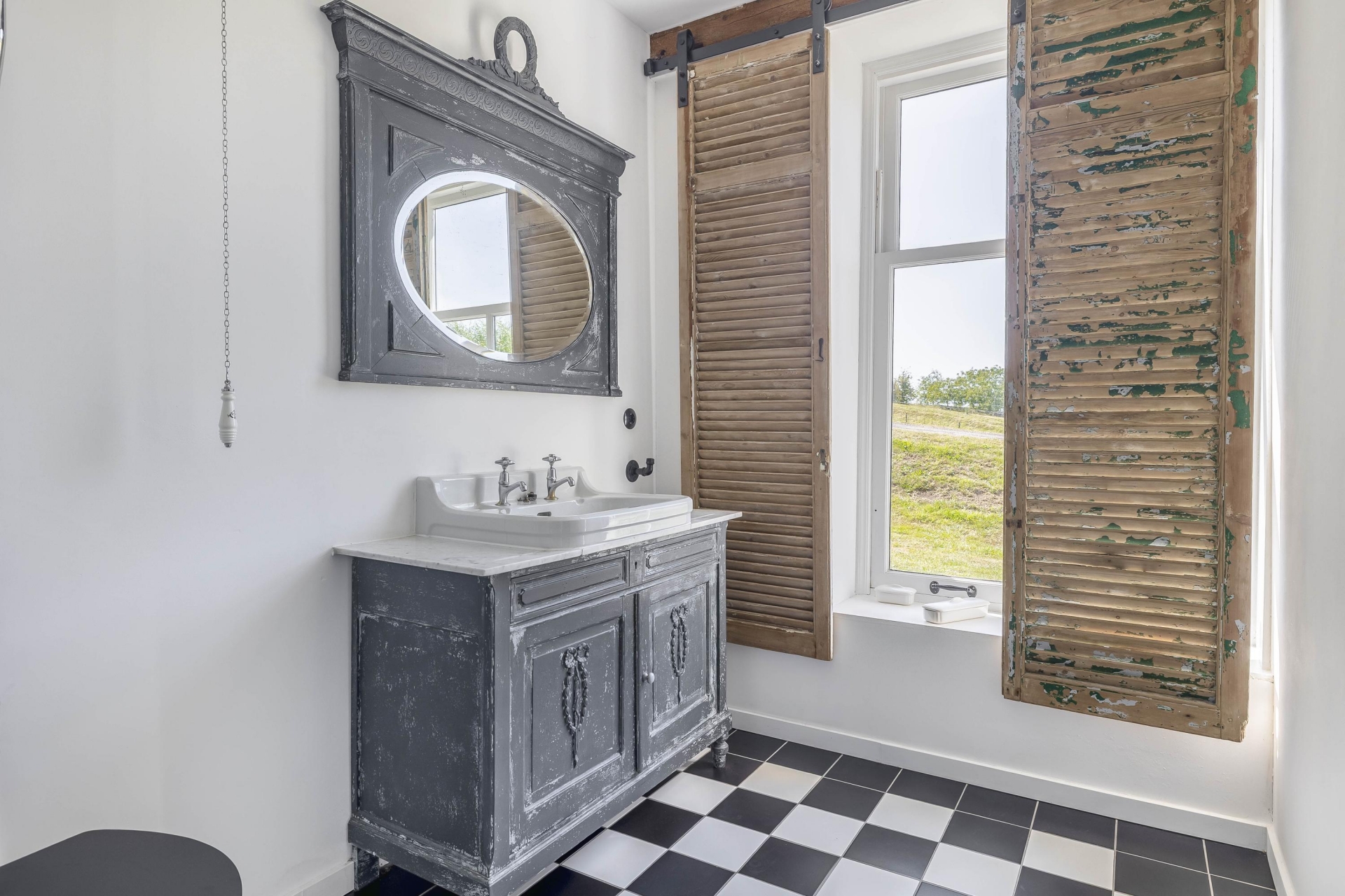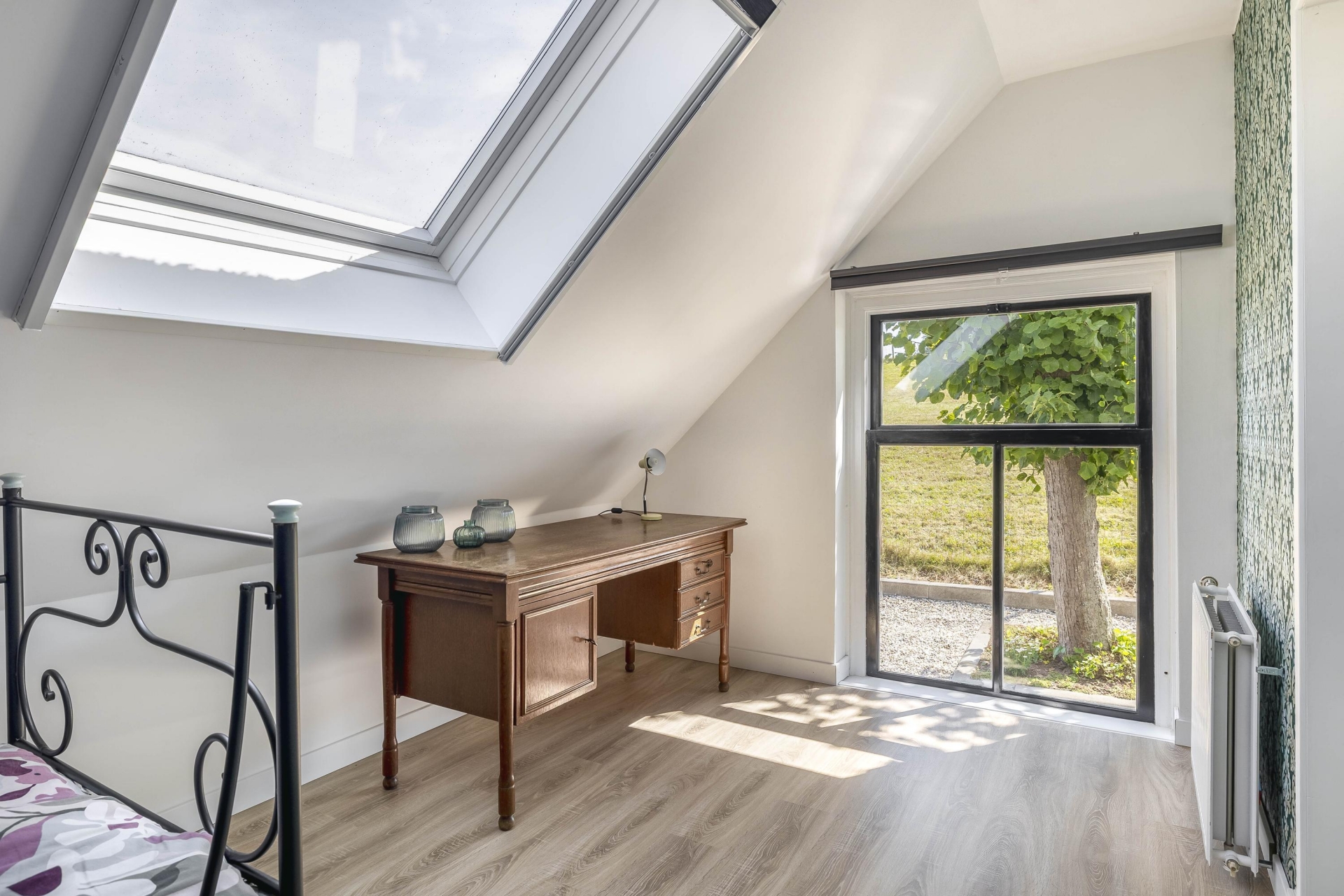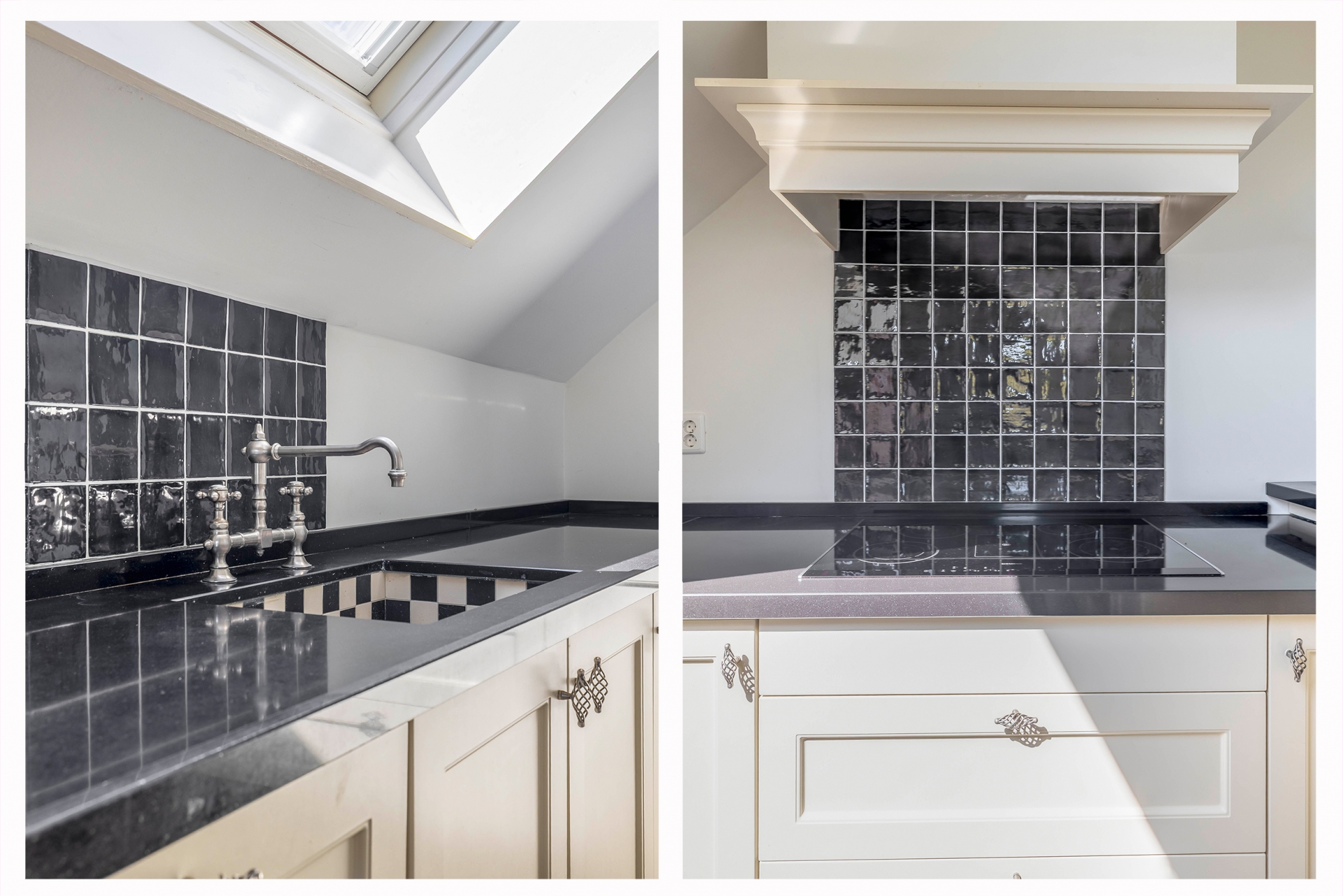 De boerderij stamt uit de 17e eeuw en is volledig gerenoveerd met oog voor stijl én comfort. De rieten kap, luiken, originele houten balken en de karakteristieke indeling ademen historie, terwijl de afwerking juist eigentijds is. De royale woonkeuken in het hart van het huis is een absolute blikvanger: een combinatie van landelijke charme en hedendaags gemak. Denk aan een groot fornuis, veel werkruimte en directe toegang tot de tuin – koken en leven vloeien hier moeiteloos in elkaar over.