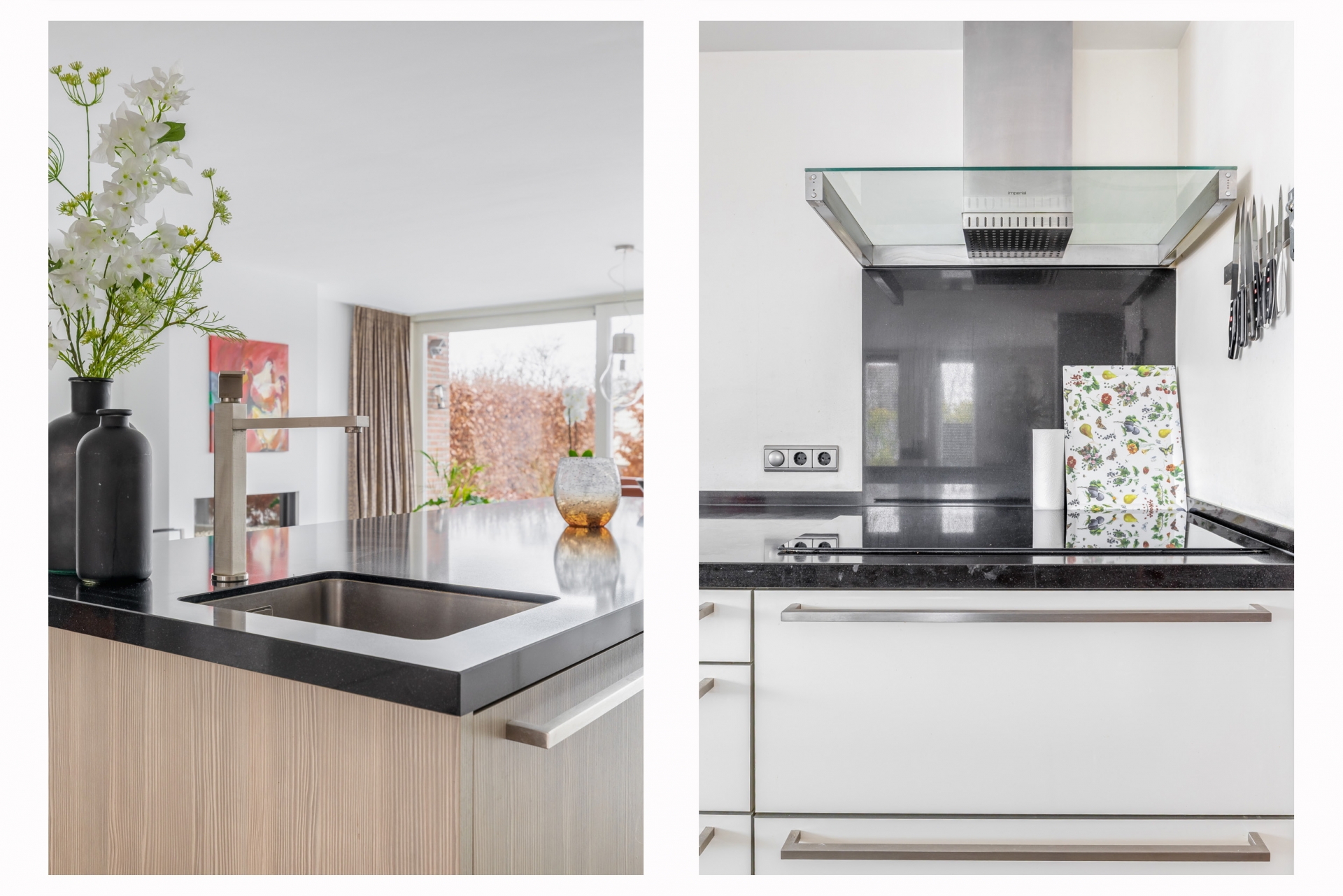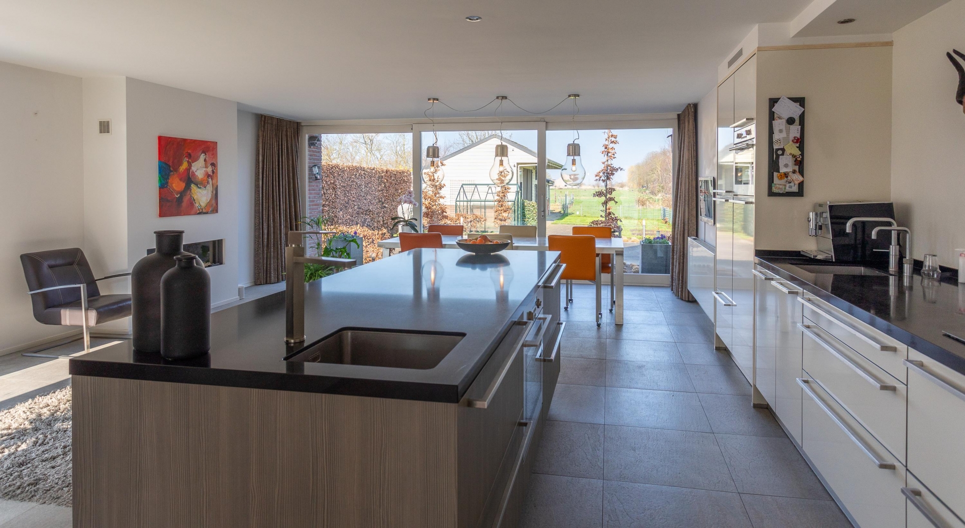 Als je eenmaal in het huis binnen bent dan wordt je verrast door het licht en de ruimte in het huis met de grote woonkeuken als kloppend hart van het huis. Deze moderne keuken heeft veel werkblad en een spoeleiland met enorme opbergmogelijkheden de apparaten zijn uit 2015 - 2020, met recht een woonkeuken met veel licht en zicht door de schuifpui naar buiten, waardoor binnen en buiten moeiteloos in elkaar overlopen. Een heerlijke plek voor lange diners, familietijd en ontspannen wonen.