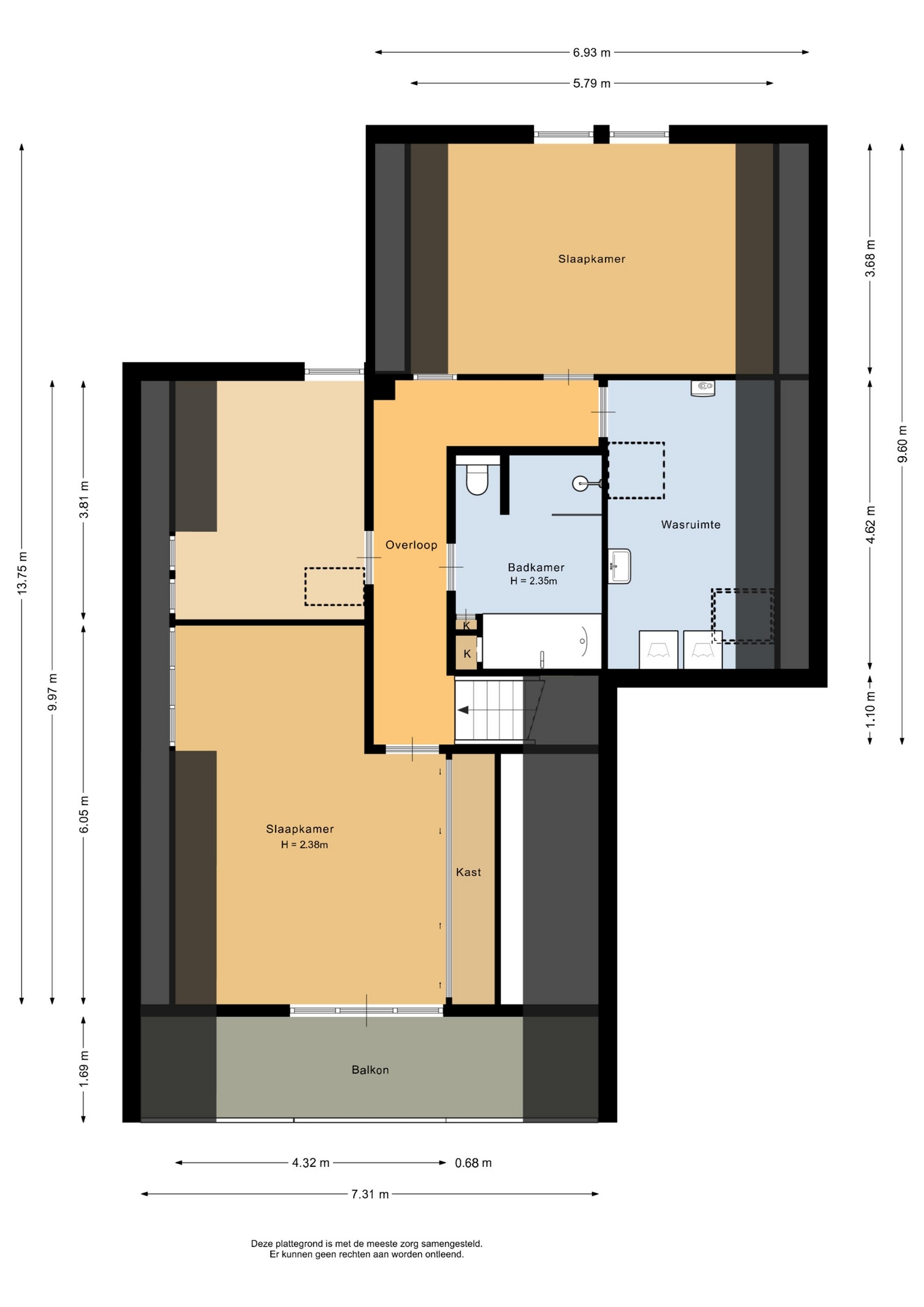 Op de verdieping tref je aan een grote comfortabele slaapkamer met een loggia en dakkapel, een slaapkamer met dakkapel en grote werkkamer/slaapkamer met een prachtig vrij uitzicht over het perceel naar achteren – ideaal voor thuiswerken of slapen met uitzicht op de polder. Verder is er een moderne badkamer (2012) en een praktische technische ruimte/waskamer, slim ingedeeld en functioneel in gebruik.