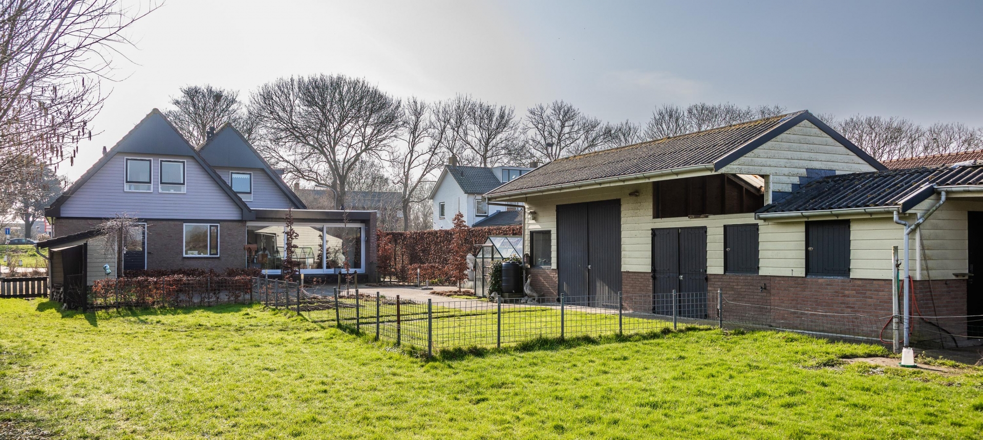 Het perceel waar het huis op staat is aan de achterkant veel breder, bovendien staat er nog een functionele schuur (2011) op van 60 m2 en (om de hoek en uit de zichtlijn) een opslagruimte van ruim 55 m2, dus kan op dit perceel ook echt buiten zijn, voor bijvoorbeeld het houden van paarden of andere dieren. Of deze ruimtes gebruiken voor een van je hobby's en/of voor je eigen bedrijf.