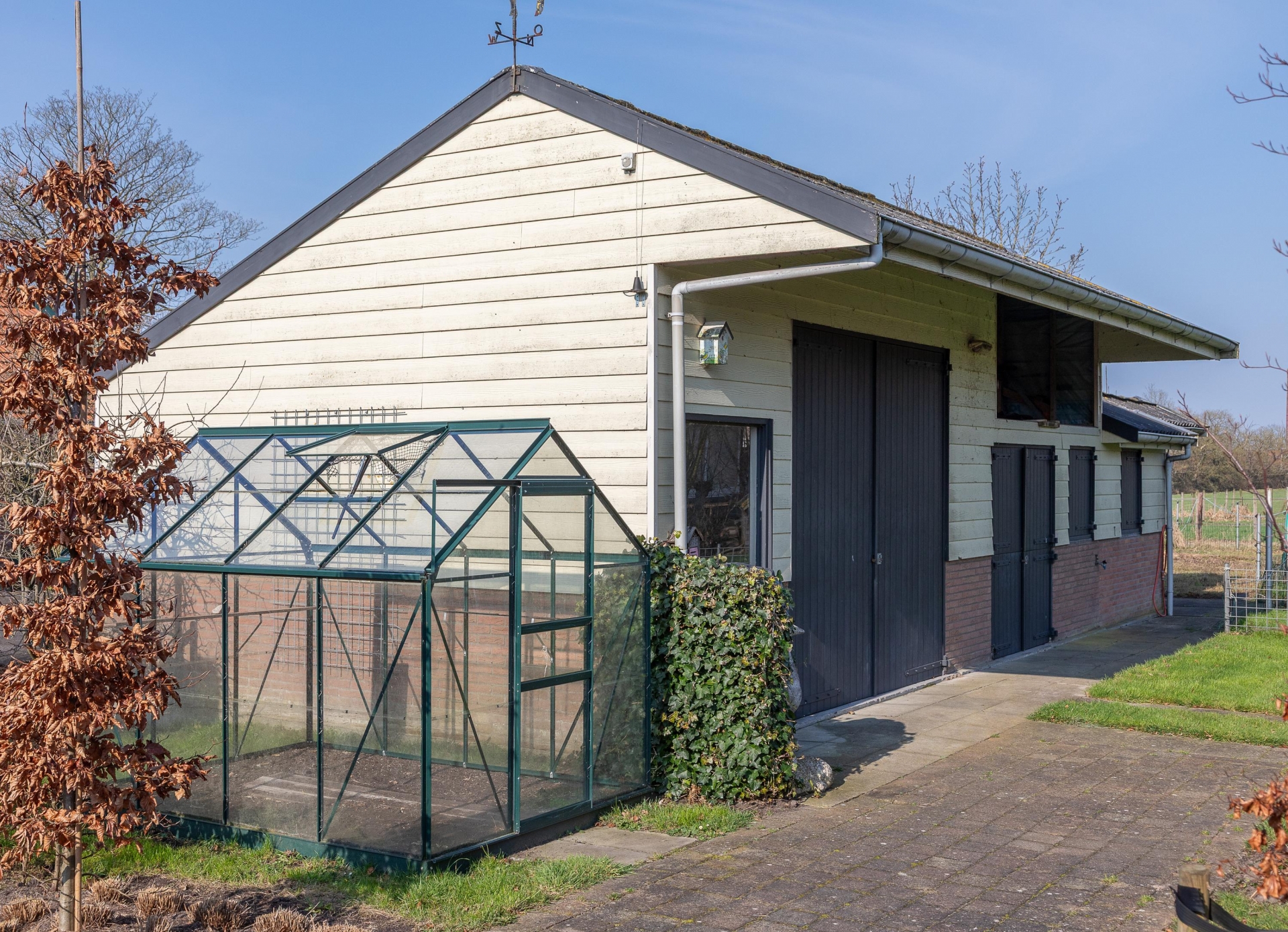 Buiten biedt het perceel veel mogelijkheden. De ruime oprit, met laadpunt voor elektrische auto's, een schuur en de kapschuur bij de achtergelegen weide maken dit object extra aantrekkelijk voor liefhebbers van ruimte en buitenleven. Voor paardenliefhebbers is dit een unieke kans: het is geen grote boerderij, maar je kunt hier wél paarden aan huis houden, weidegang bieden (aangrenzend ligt nog een perceel van circa 10.000 m2 wel er mogelijk ook te gebruiken is) én de manege bevindt zich op stapafstand – een zeldzame combinatie!