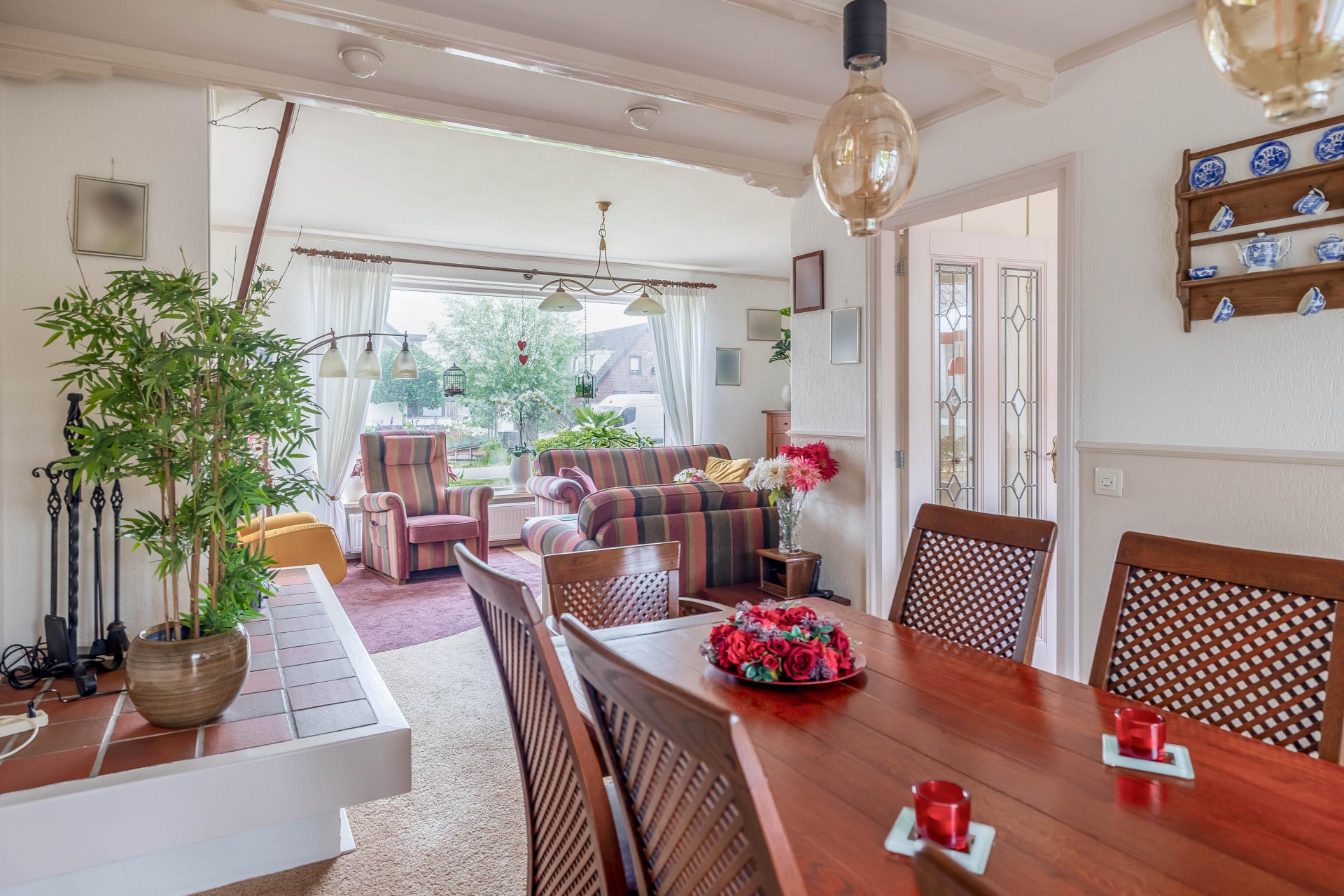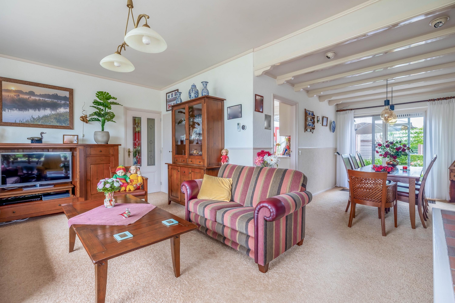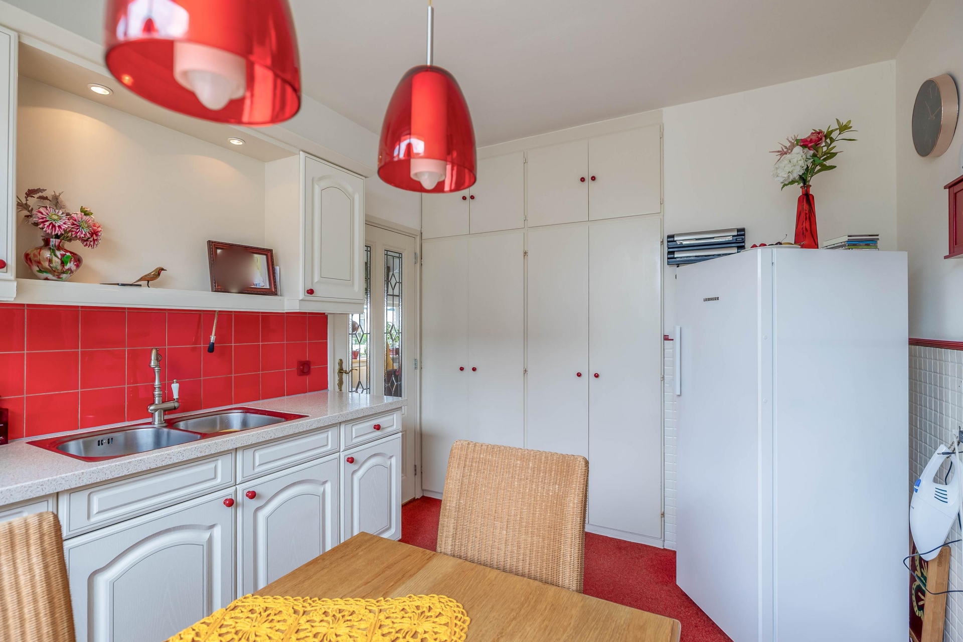 De woning beschikt over een bijzonder ruime en lichte woonkamer, waar grote raampartijen zorgen voor een overvloed aan natuurlijk daglicht en uitzicht op de fraai aangelegde tuin. De aangrenzende woonkeuken biedt voldoende ruimte voor een eettafel en is een uitnodigende plek om samen te koken, te eten en te genieten.