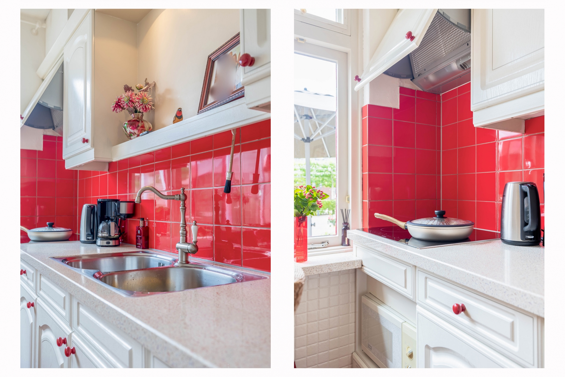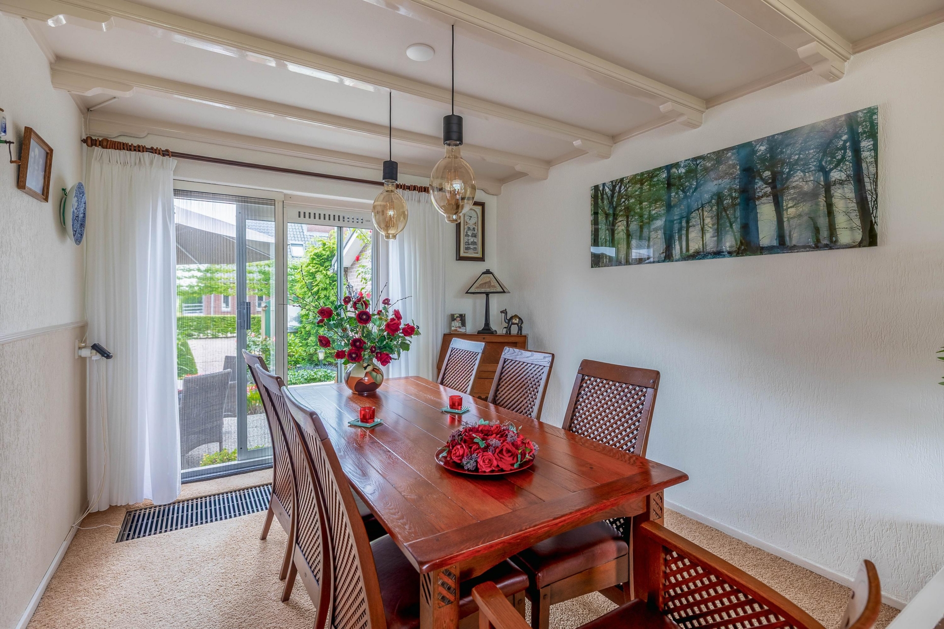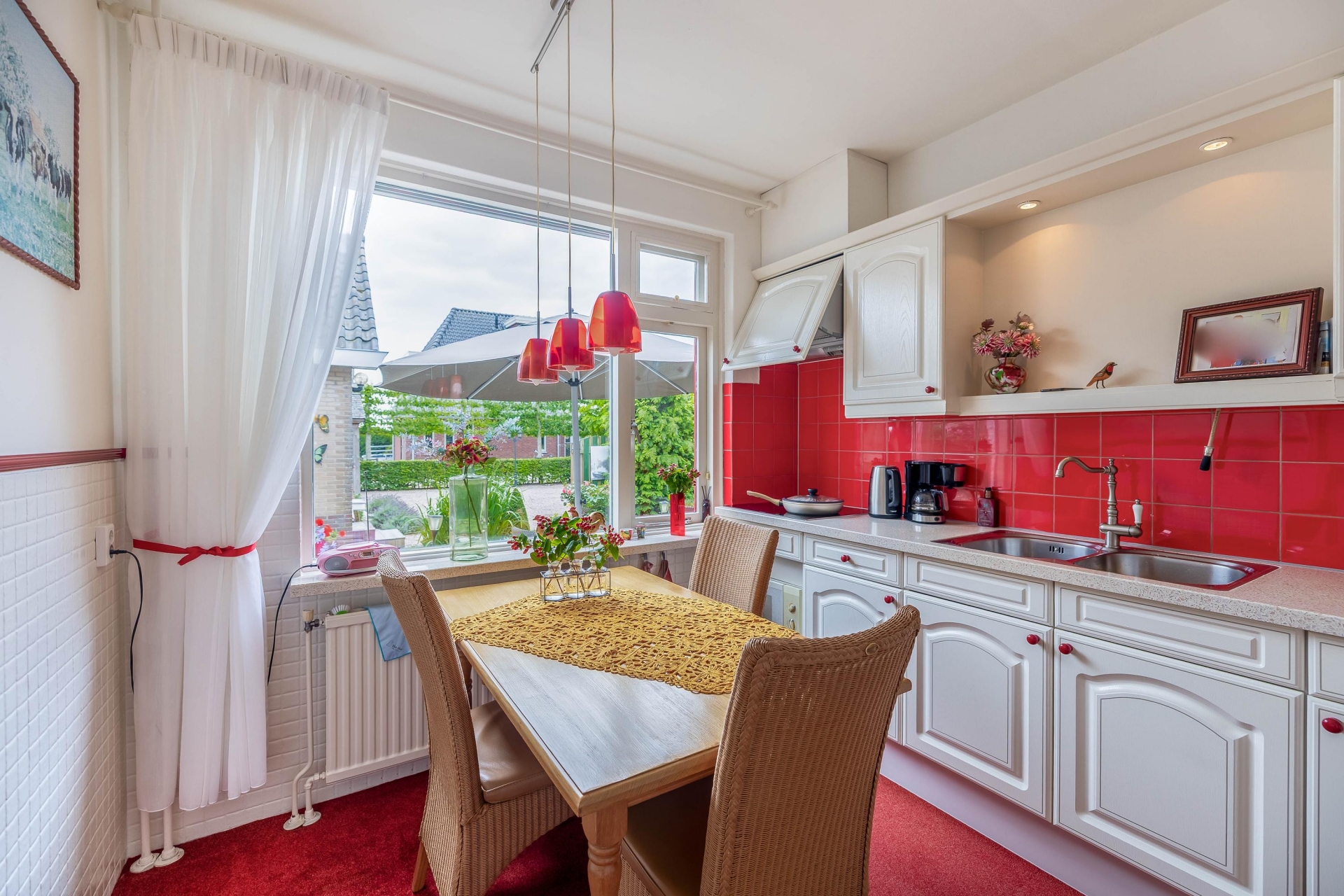 De woning beschikt over een bijzonder ruime en lichte woonkamer, waar grote raampartijen zorgen voor een overvloed aan natuurlijk daglicht en uitzicht op de fraai aangelegde tuin. De aangrenzende woonkeuken biedt voldoende ruimte voor een eettafel en is een uitnodigende plek om samen te koken, te eten en te genieten.