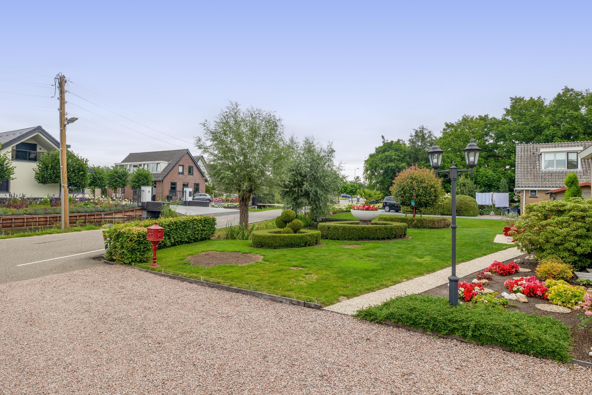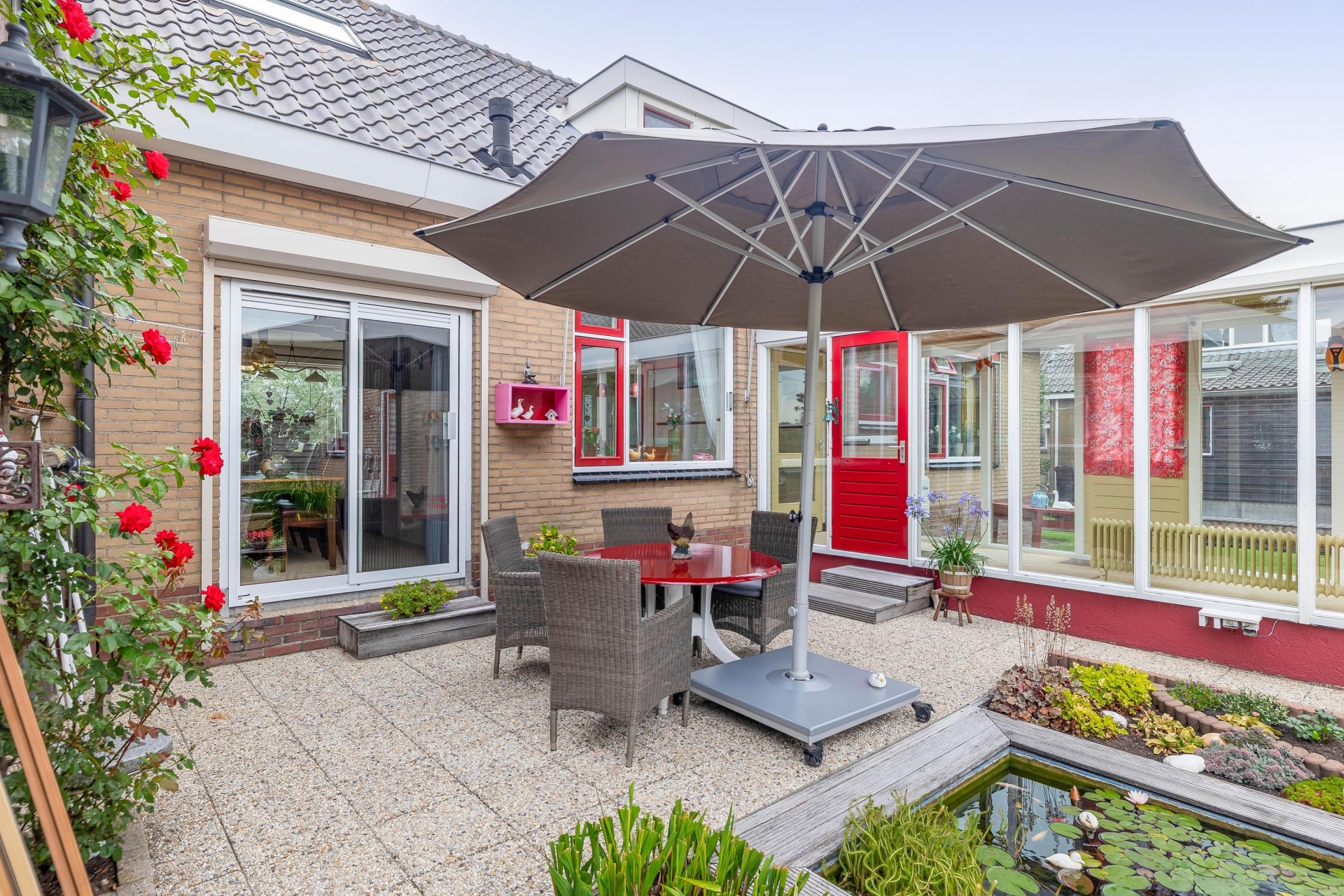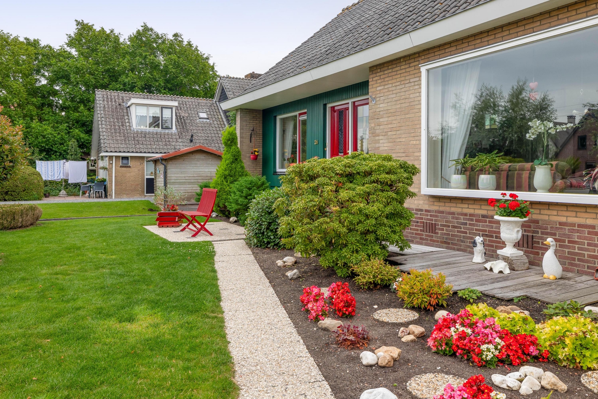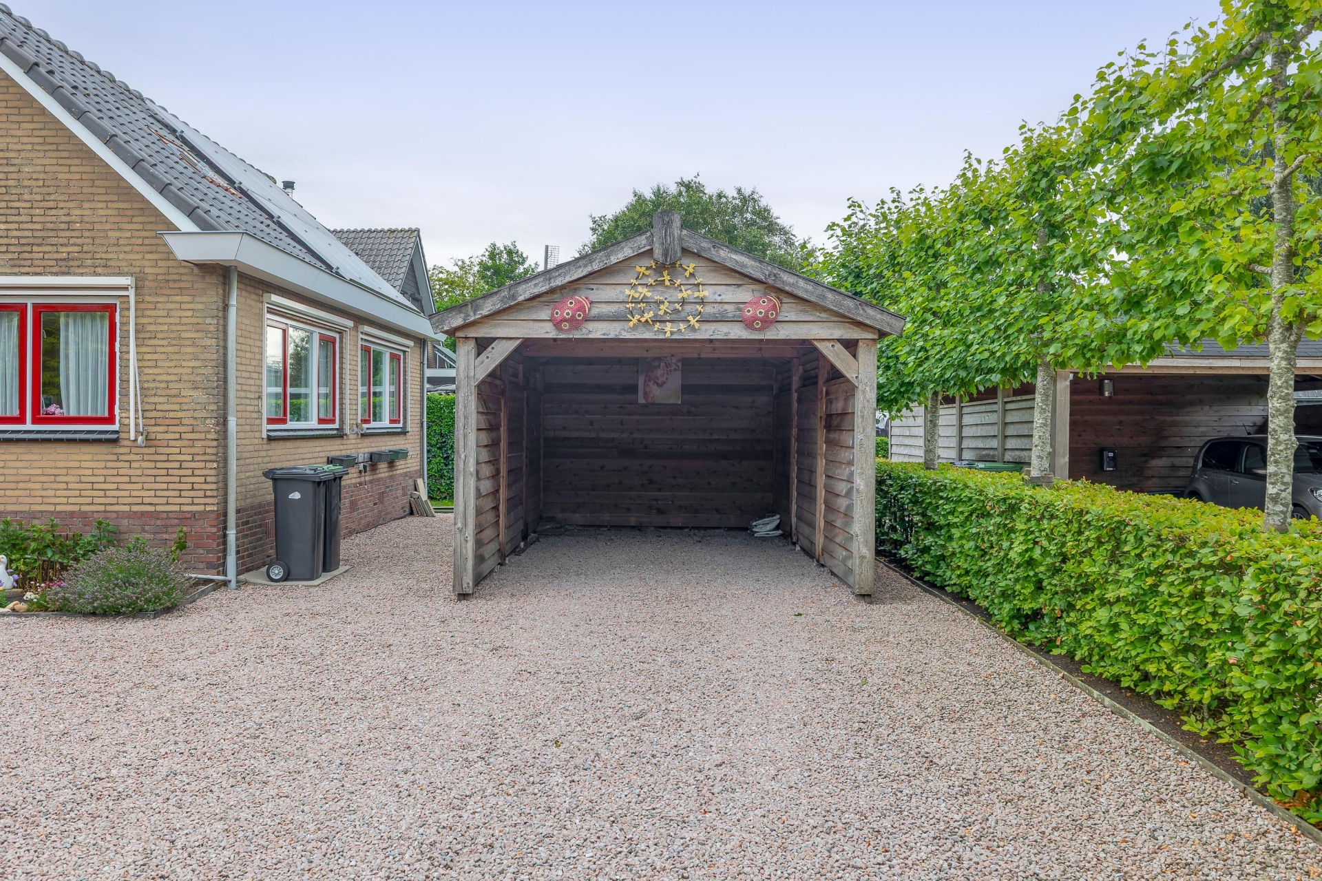 De rondom gelegen tuin is met zorg aangelegd en biedt een mooie balans tussen zon en schaduw dankzij de ligging op het noorden, westen én zuiden. Meerdere terrassen en groene borders zorgen voor een fijne buitenbeleving met volop privacy. Naast een garage is er ook een carport aanwezig.