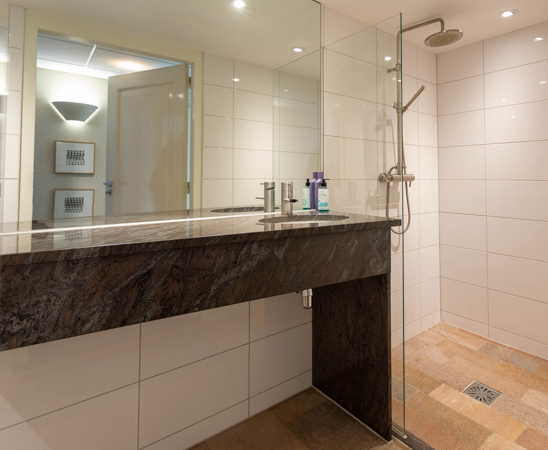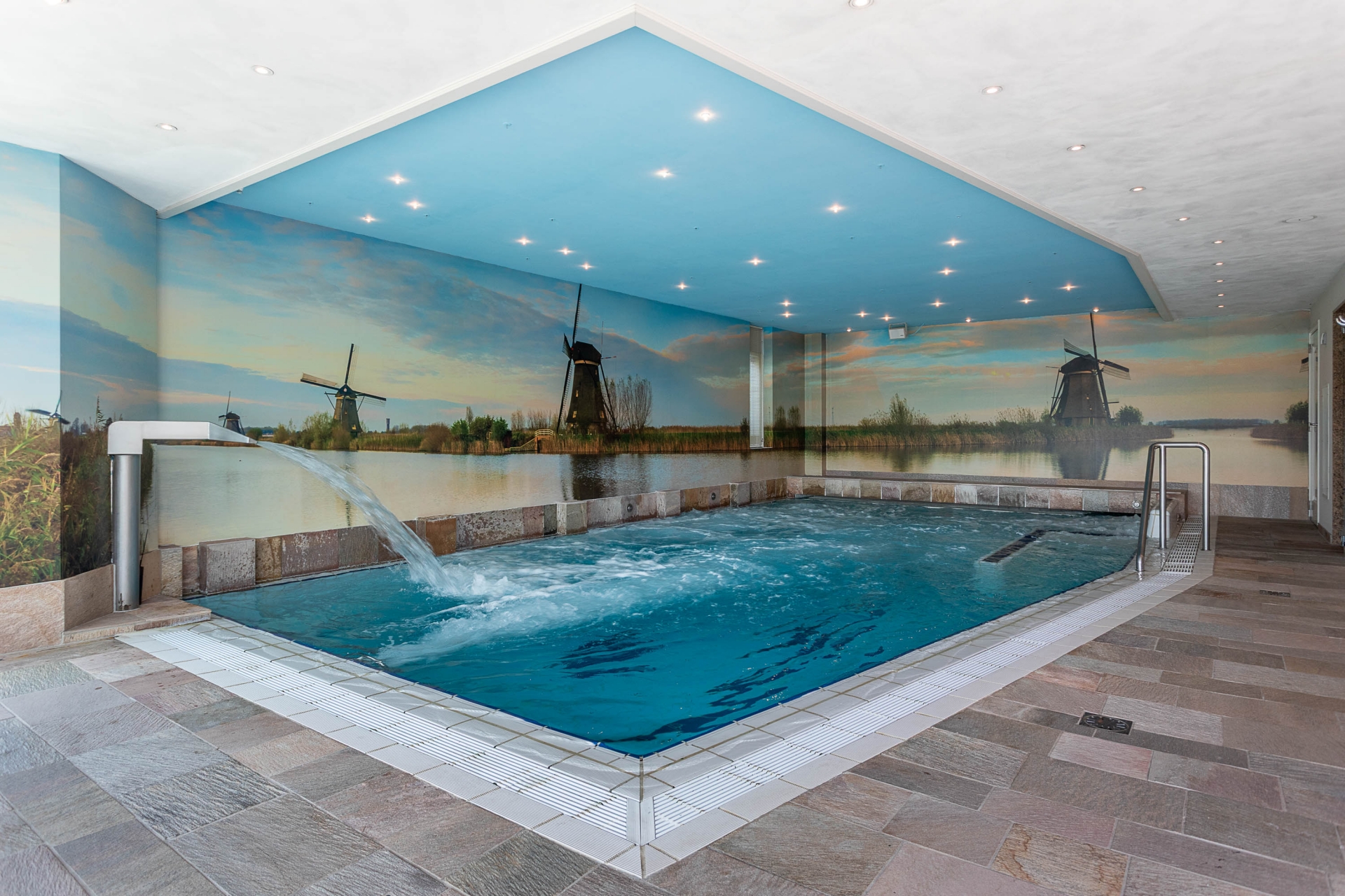 Het souterrain herbergt een complete wellness afdeling die van deze villa een privéresort maakt. Ontspan in het zwembad met jet stream, laat u meevoeren door de waterval, geniet van de bruisplaat, de wandbruiser of kom tot rust op de whirlpoolbank. Een oase van ontspanning, gewoon in uw eigen huis.