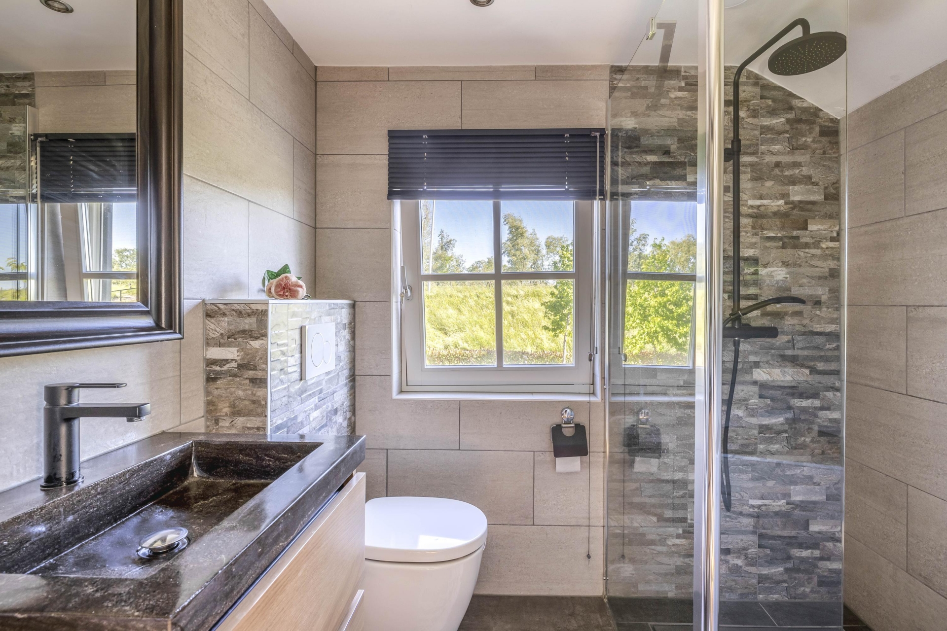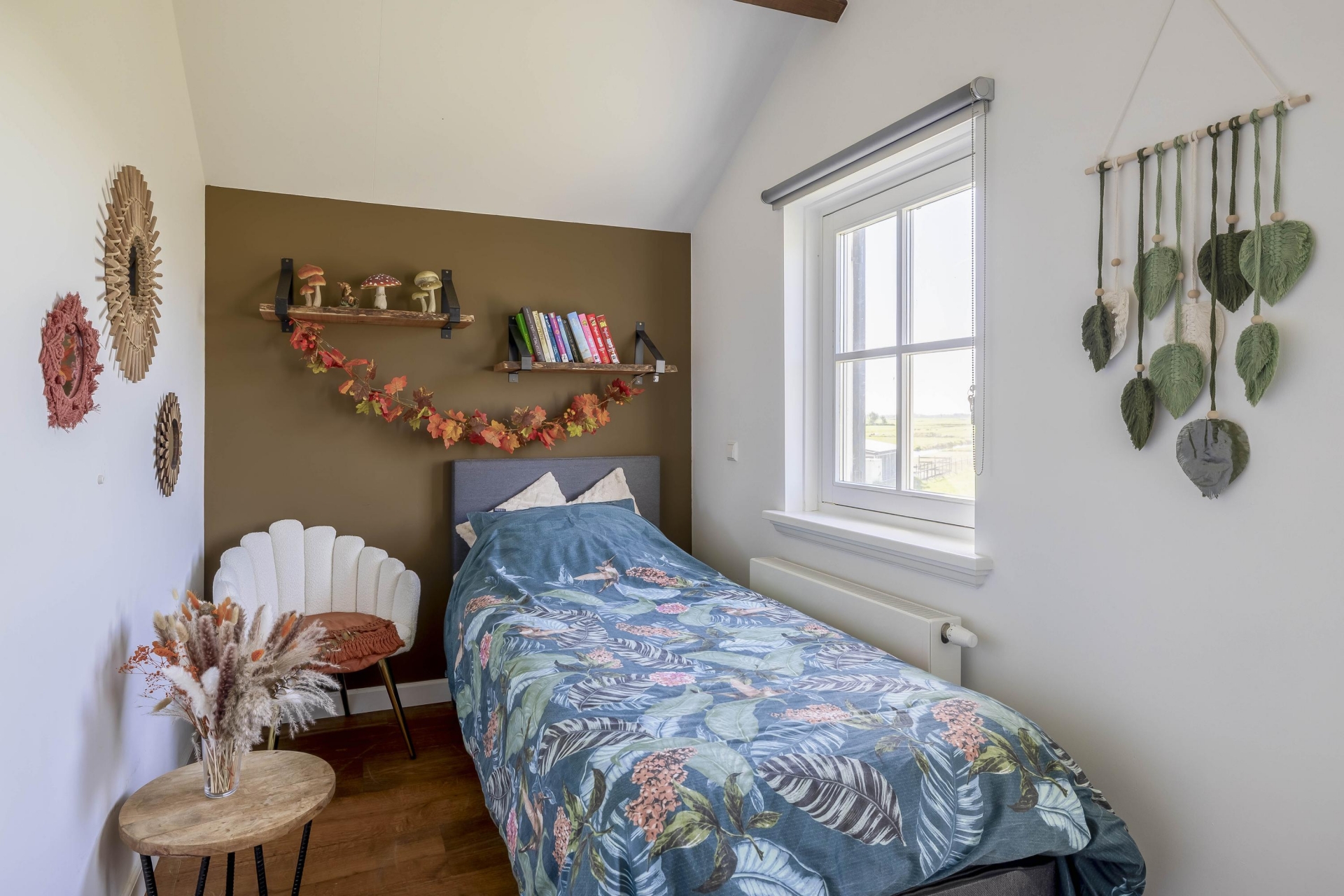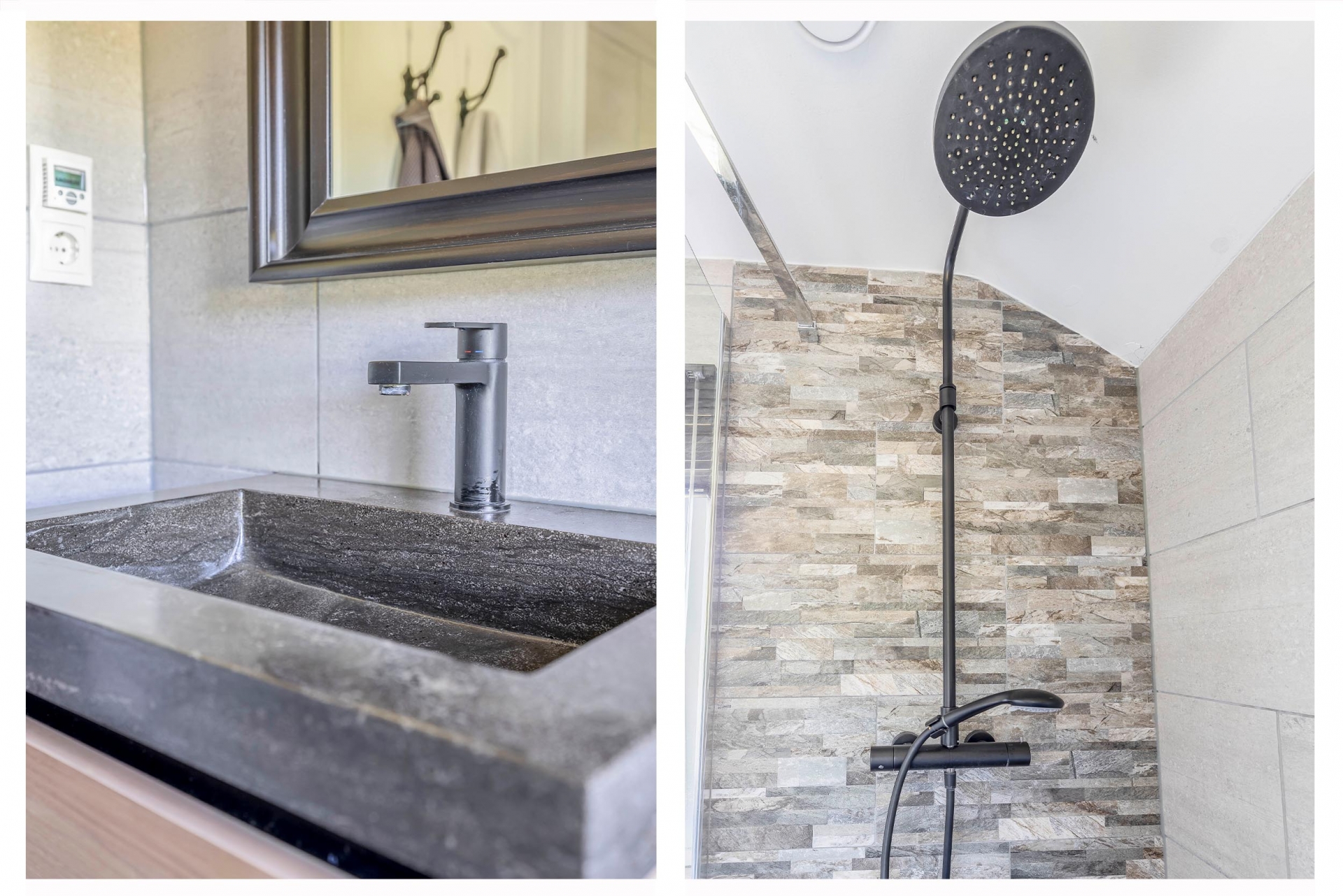 De woning telt vijf slaapkamers, twee badkamers (waarvan één nieuw in 2023), en een extra herentoilet beneden. De nieuwe badkamer is uitgevoerd in dezelfde natuurlijke stijl, met ligbad, inloopdouche en barnwood meubels.