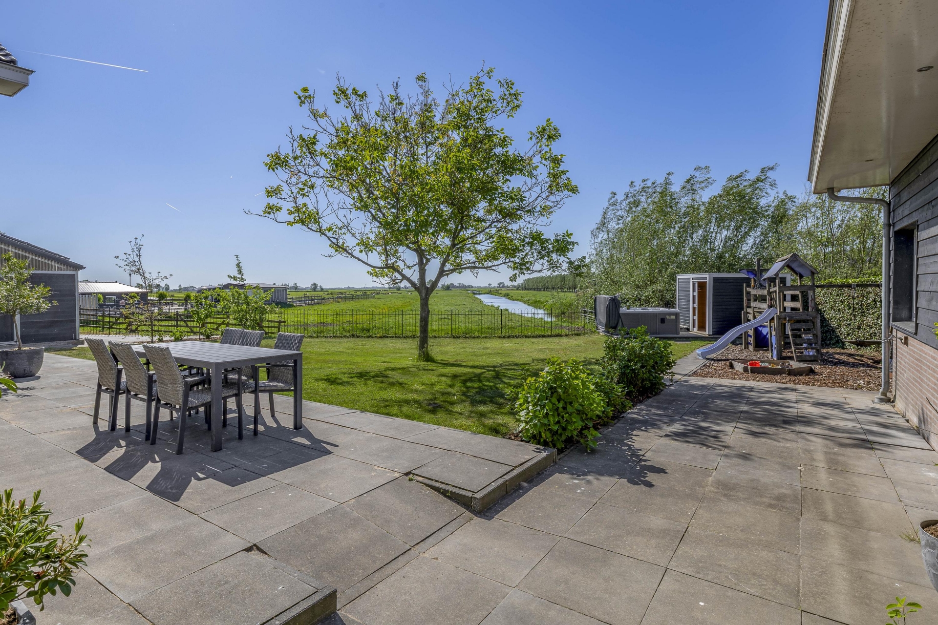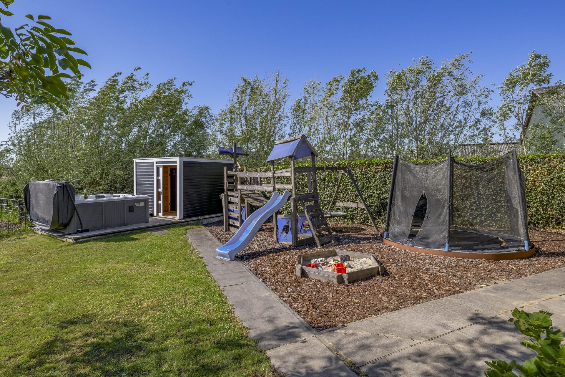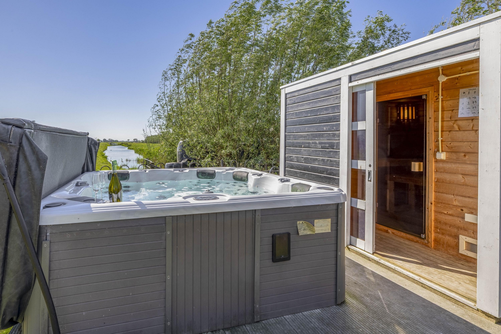 De tuin is een oase van rust en groen. Op het zonnige zuidwesten geniet u de hele dag van zon en uitzicht over de weilanden. Er is een jacuzzi (6 pers.), een sauna (2,5 x 2,5 m), en een gezellige overkapping met houtkachel voor lange avonden buiten.