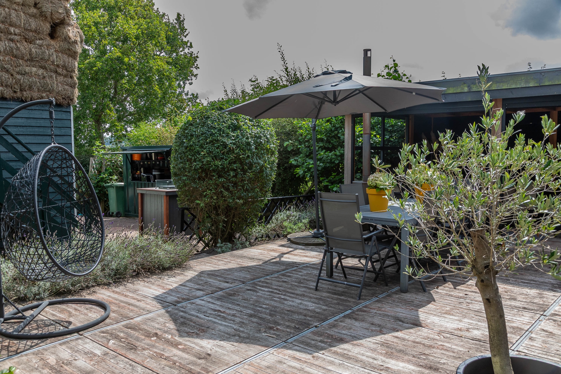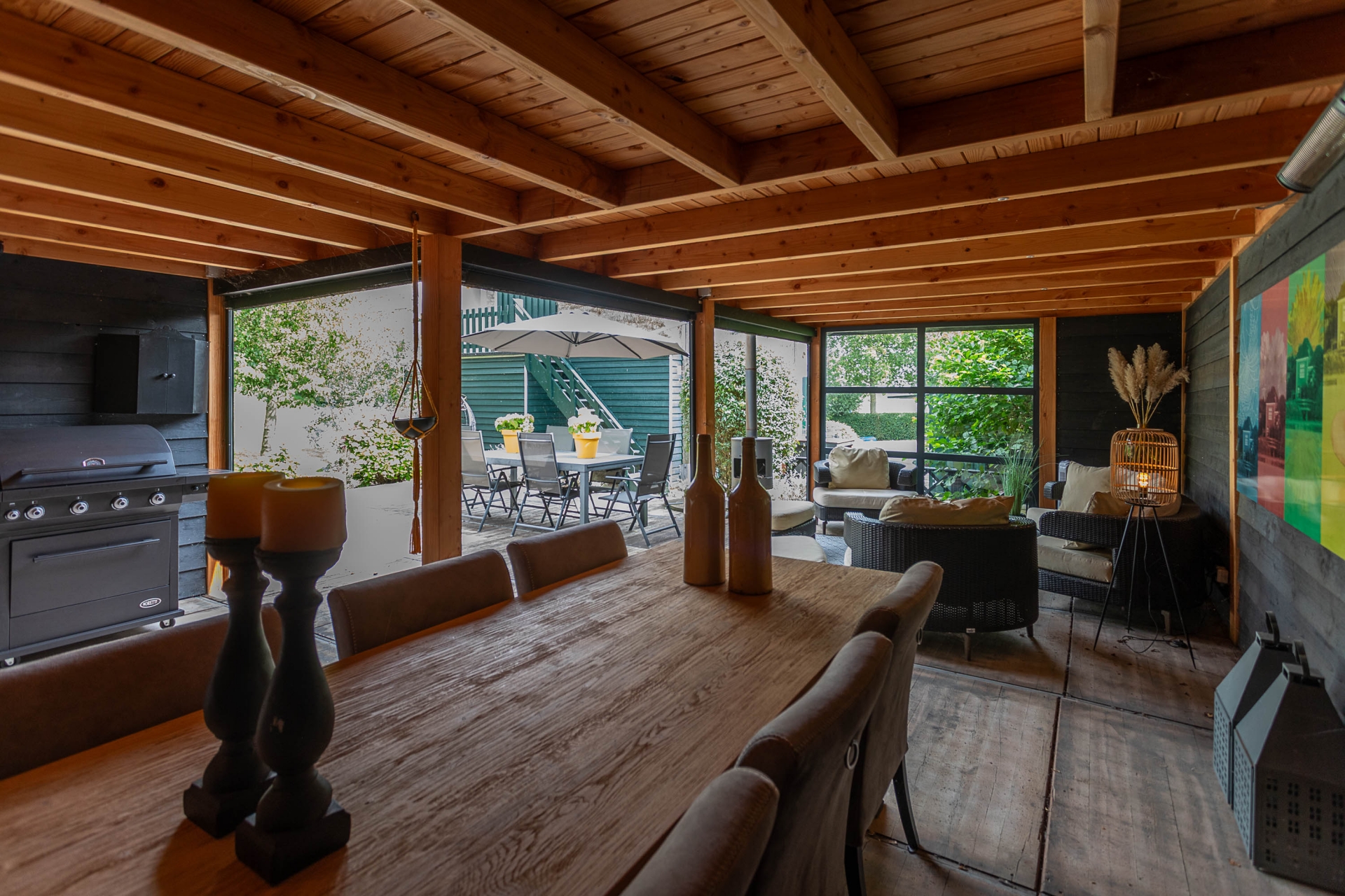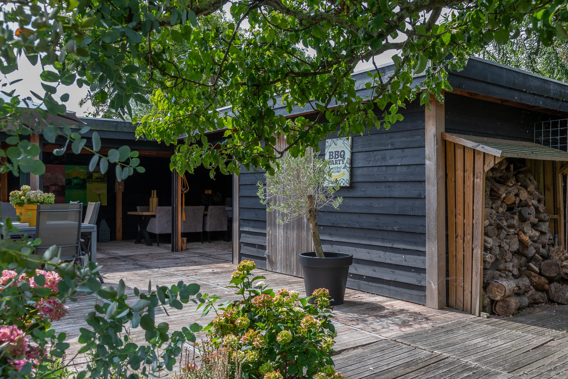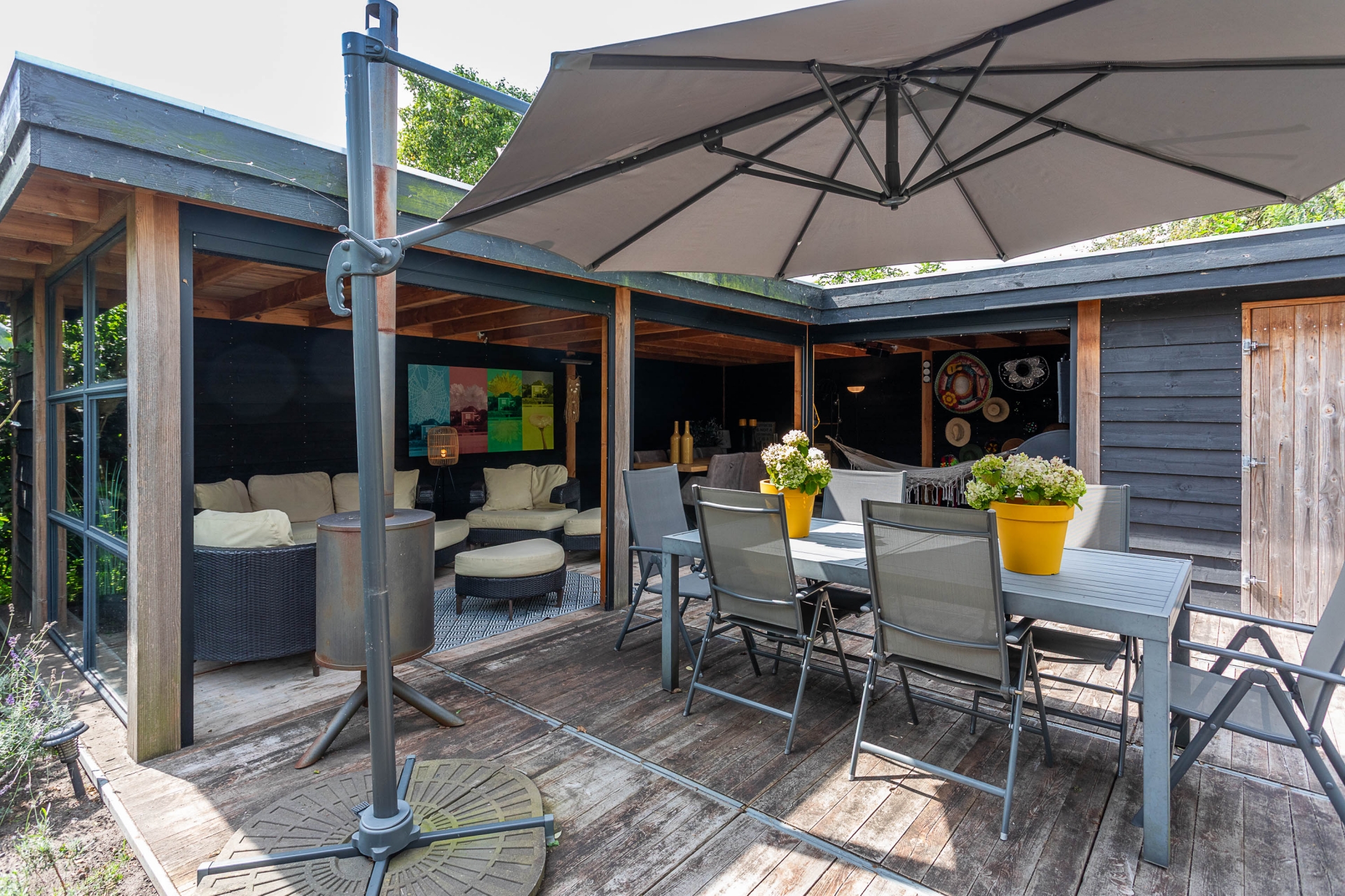 De lounge in het tuinhuis, de cocktailbar voor feestelijke avonden, de hangmatten op zolder met 360 graden uitzicht, en de dubbele garage — alles ademt comfort en buitenleven.