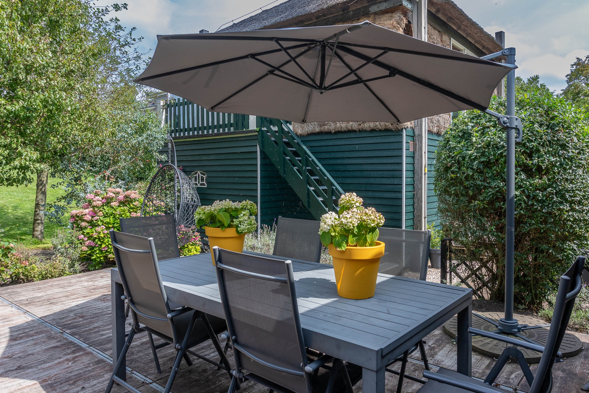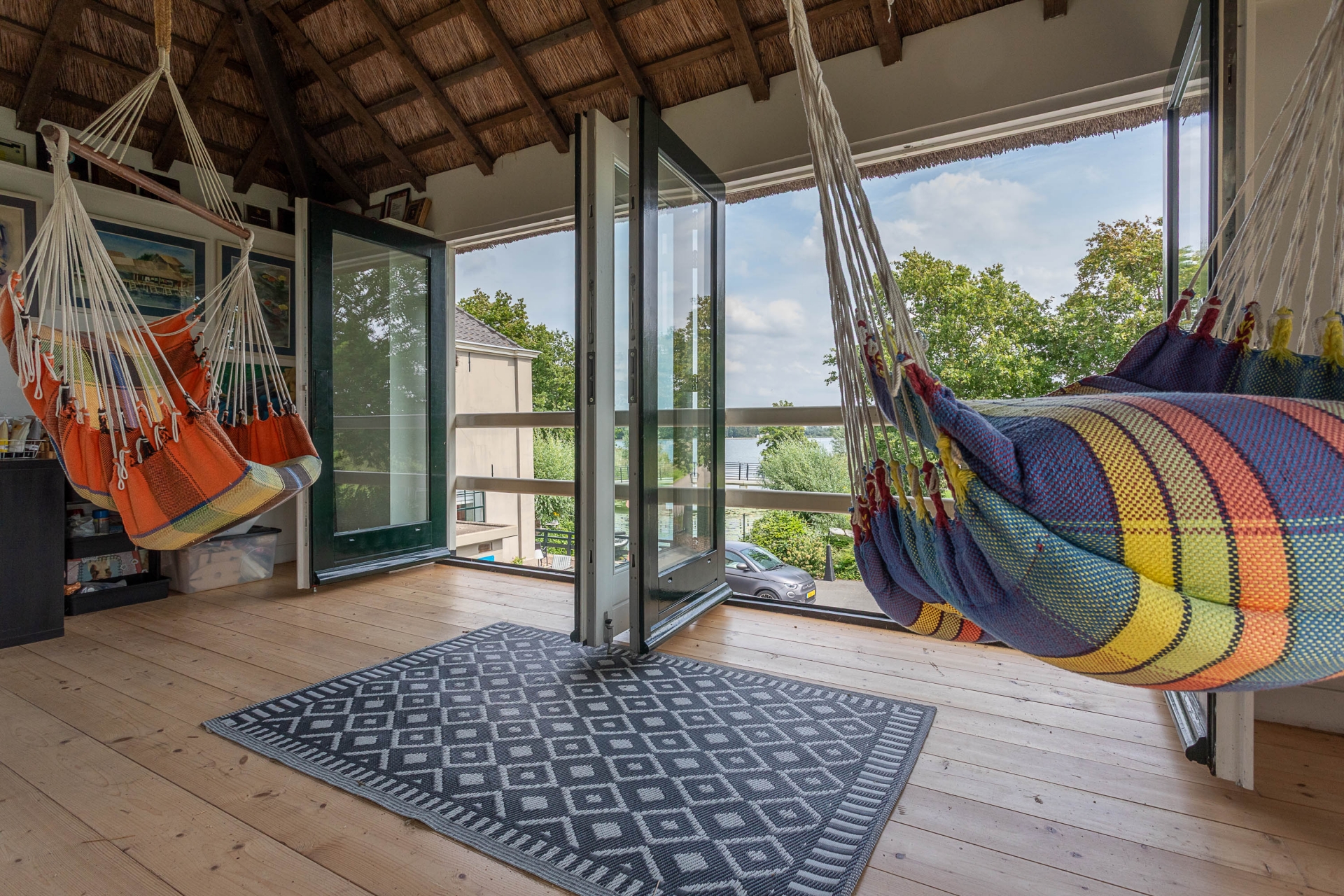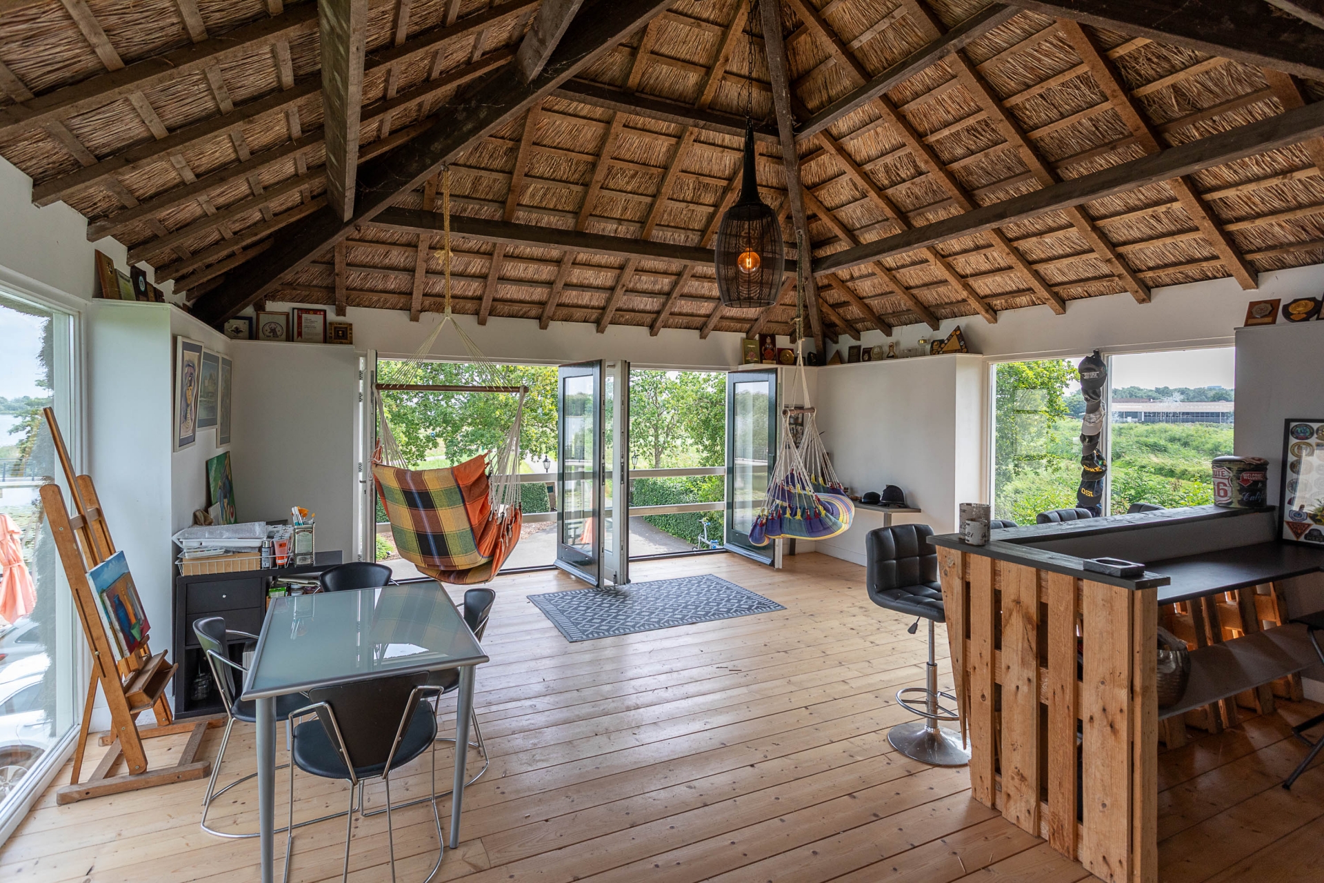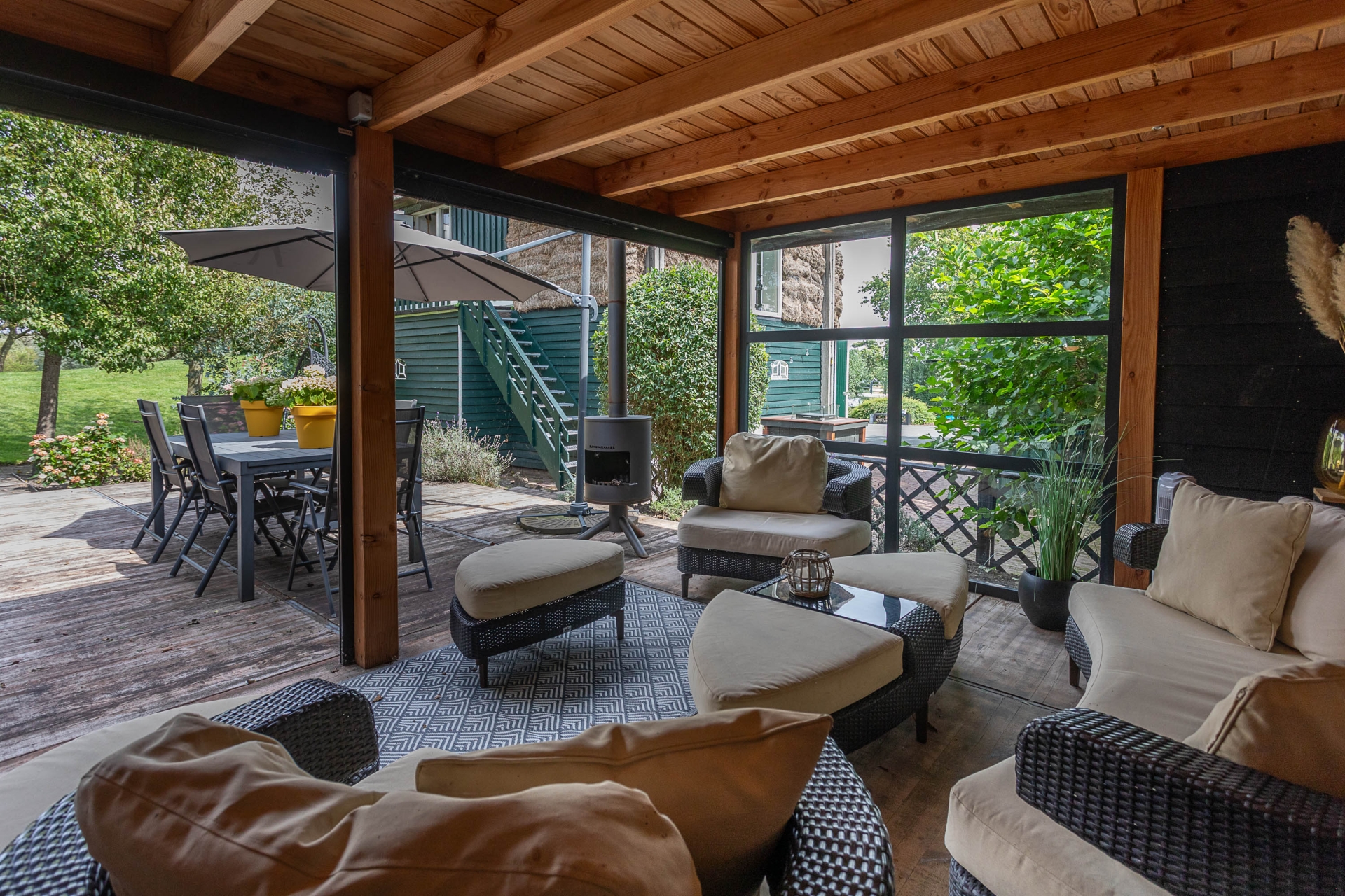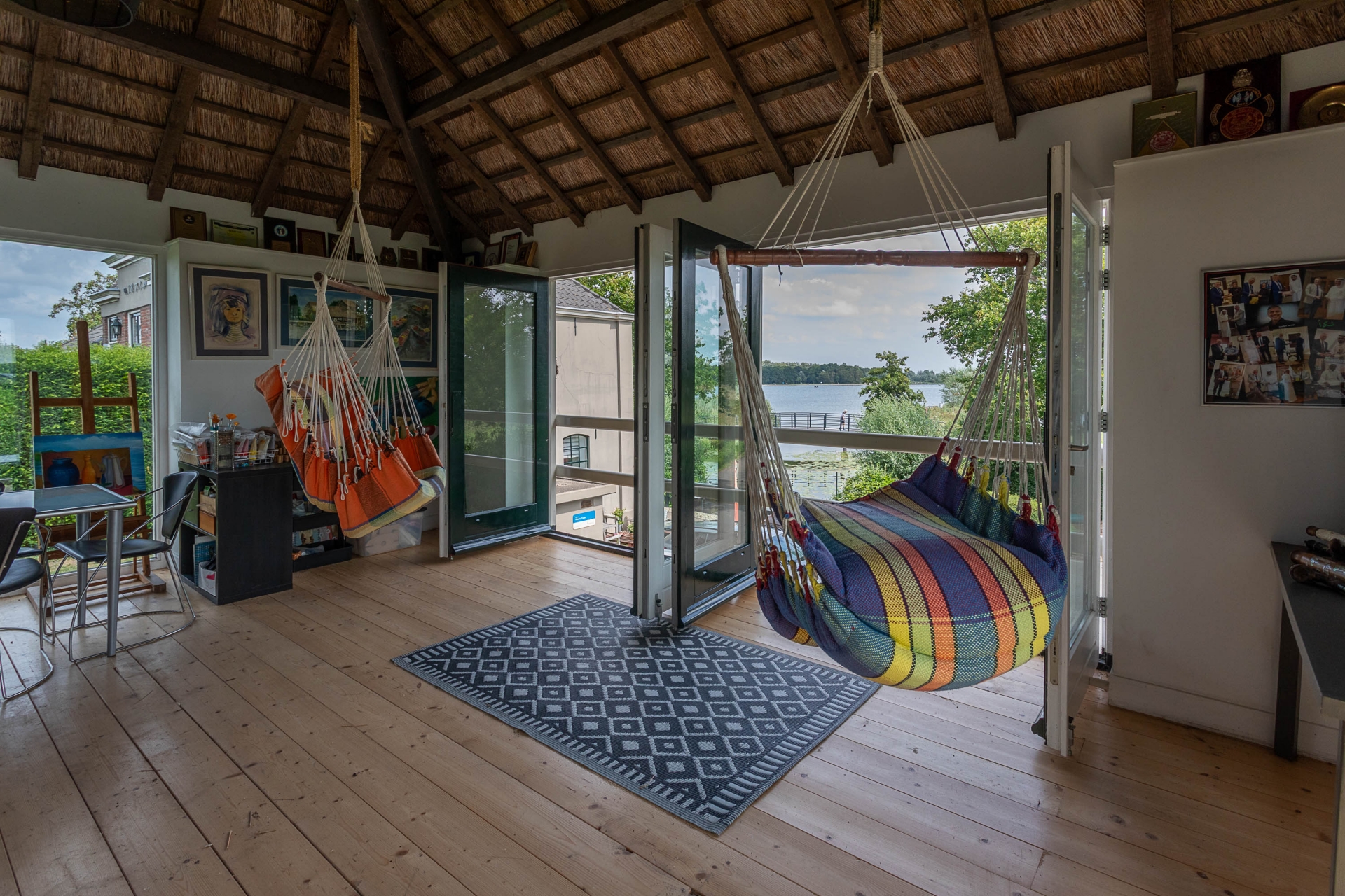 Het huis staat volledig vrij, midden in het groen, met rondom uitzicht over water, rietvelden en weidse luchten. Vanuit je tuin stap je zó je eigen aanlegsteiger op — perfect voor een kano, sloep of SUP. Verder vind je op het perceel een boomgaard, broeikas, cocktailbar, tuinhuis en meerdere zonovergoten terrassen. Genieten van de natuur was nog nooit zo ontspannen.