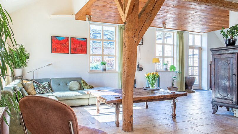Roel: ‘Wij hadden een makelaar uit Leerdam gevraagd om onze woning te taxeren. Hij adviseerde ons vervolgens om Schep Makelaars te benaderen voor de verkoop, mede omdat zij zijn aangesloten bij Buitenstate. Hun specialiteit is de verkoop van exclusieve en vrijstaande woningen in het buitengebied, maar ons huis staat binnen de bebouwde kom. Makelaar Harold van Rooij had aanvankelijk dan ook zijn twijfels of het huis wel in hun portefeuille zou passen maar hij kwam toch een kijkje nemen en raakte enthousiast. En wij ook.’
