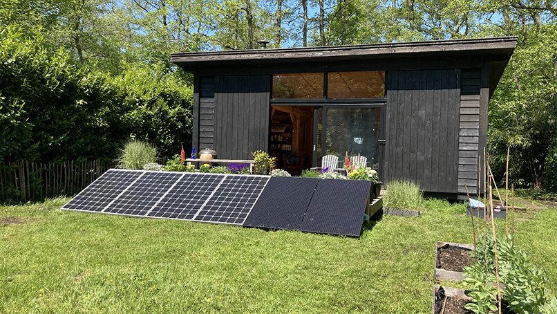 Rob: ‘Een groot stuk grond, 1.760 m², waar we op de fiets naar toe konden. Het ligt slechts 18 kilometer van ons huis in Rotterdam. Destijds stond er slechts een provisorisch hutje waar we tien jaar van hebben genoten. Daarna begon een waar experiment: een zelfvoorzienend tiny house bouwen met een waterpomp en vier zonnepanelen.’