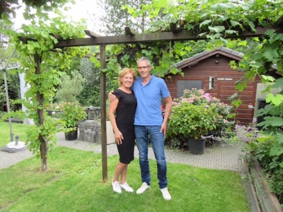 Hans en Mariëtte Hoogland in de tuin van hun nieuwe woning in De Meern. ‘Schep Makelaars beschikt over de juiste kennis en contacten.’